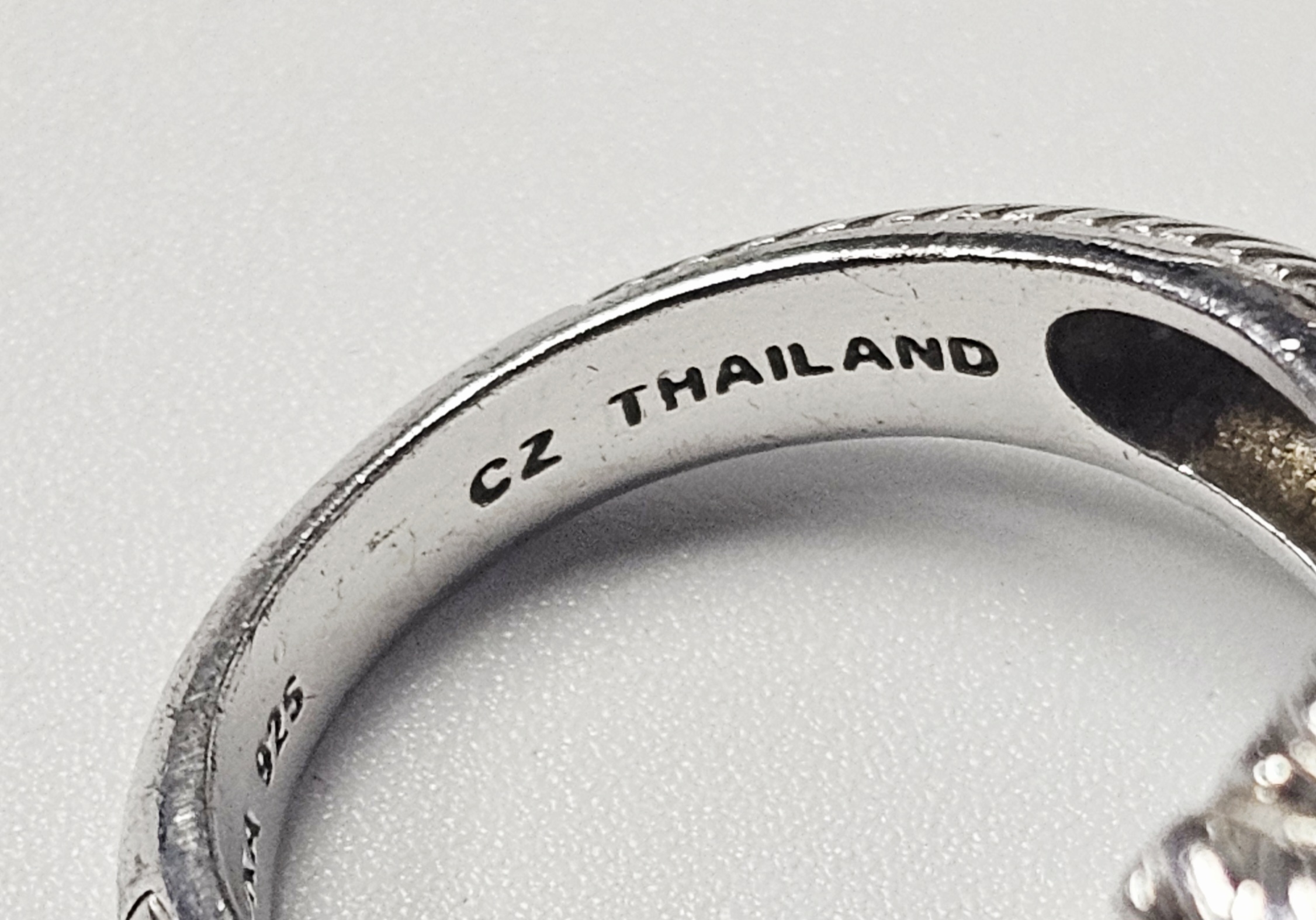 The ring is in good pre-owned condition with minor surface wear and light tarnishing to the silver consistent with use. Stones appear secure in their settings.