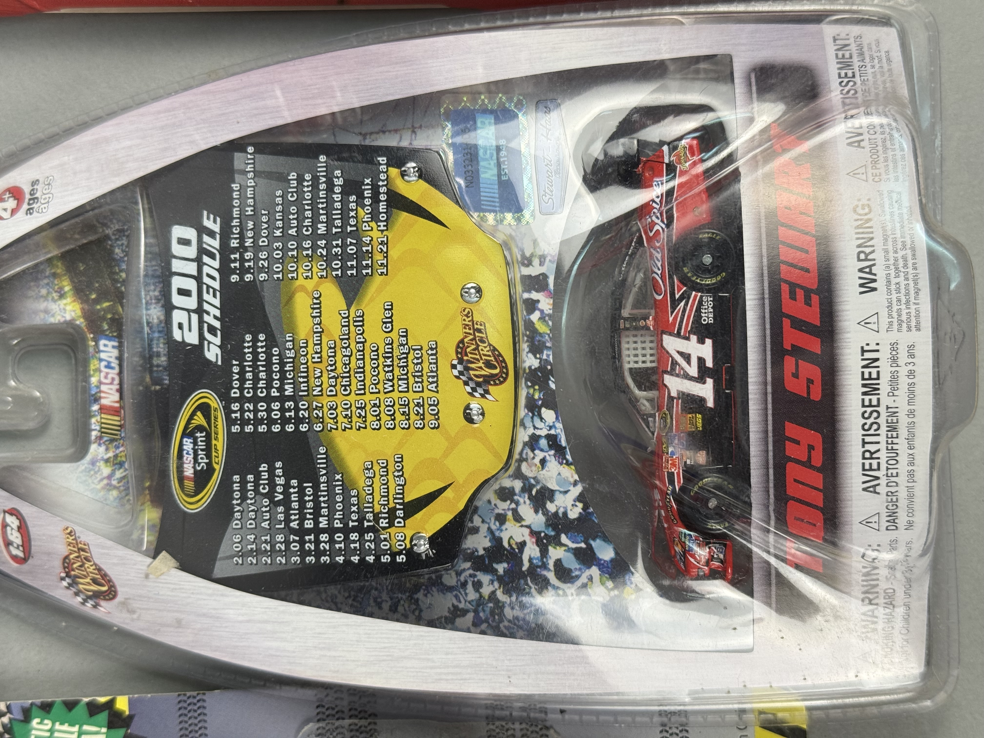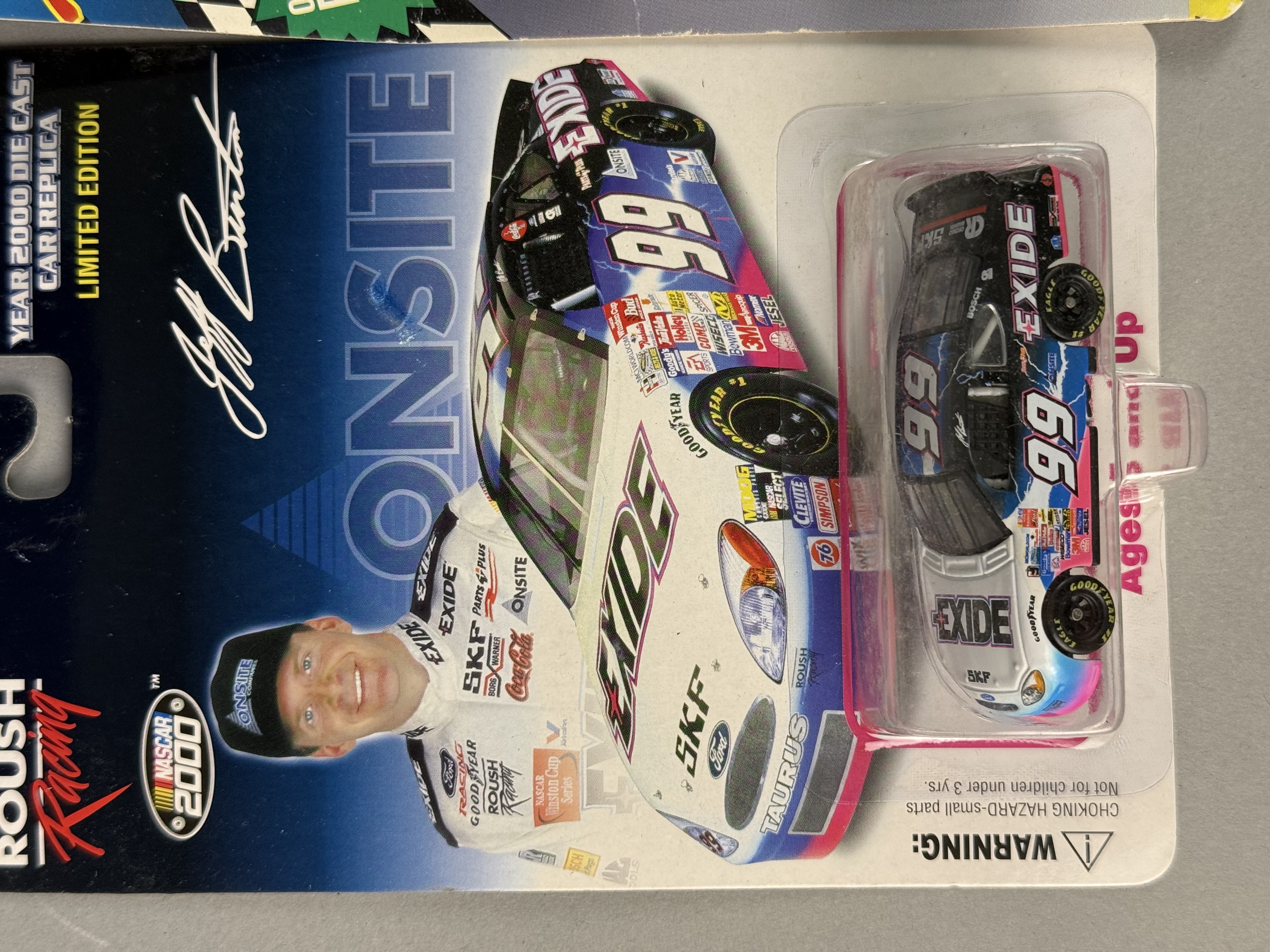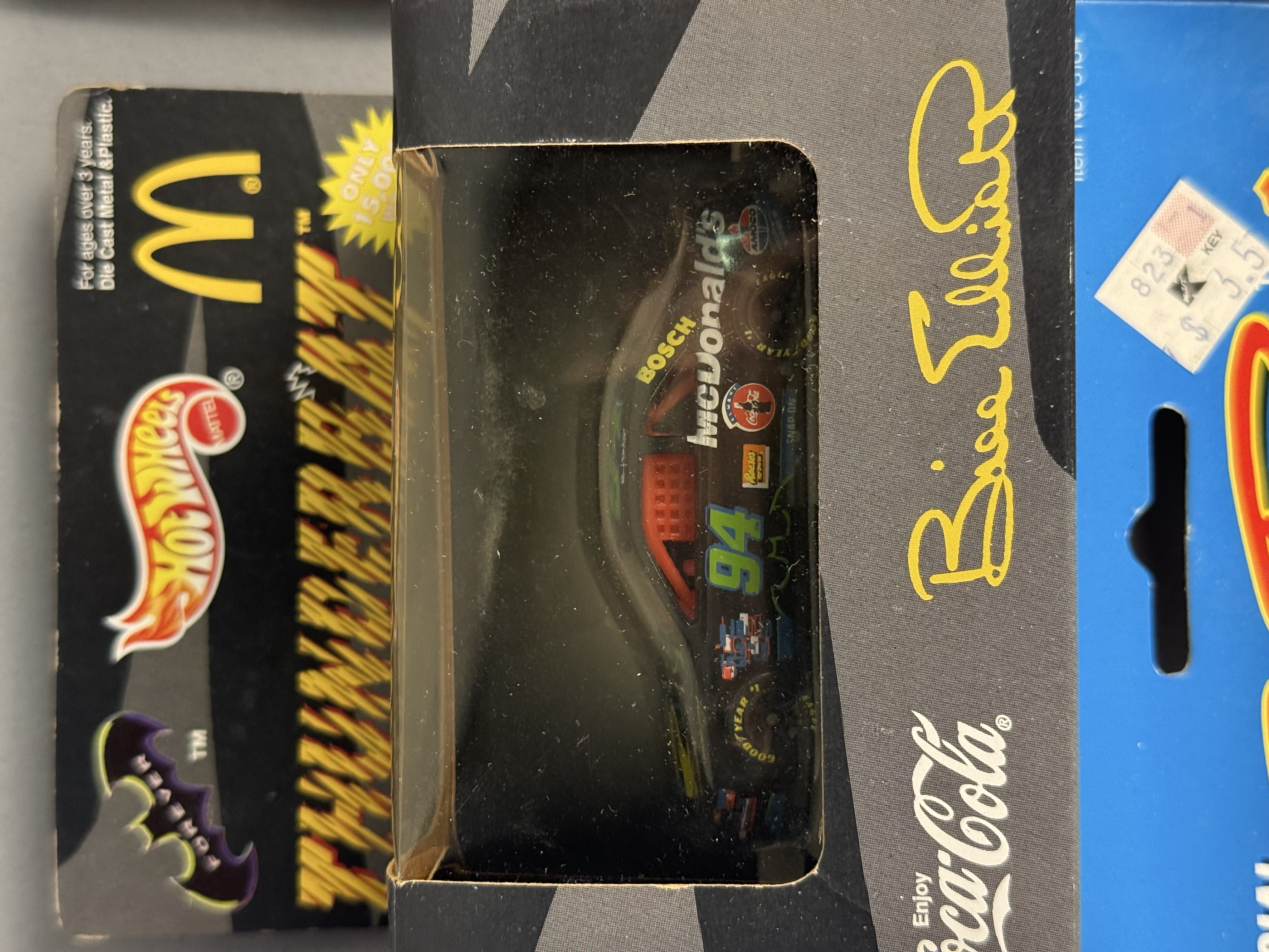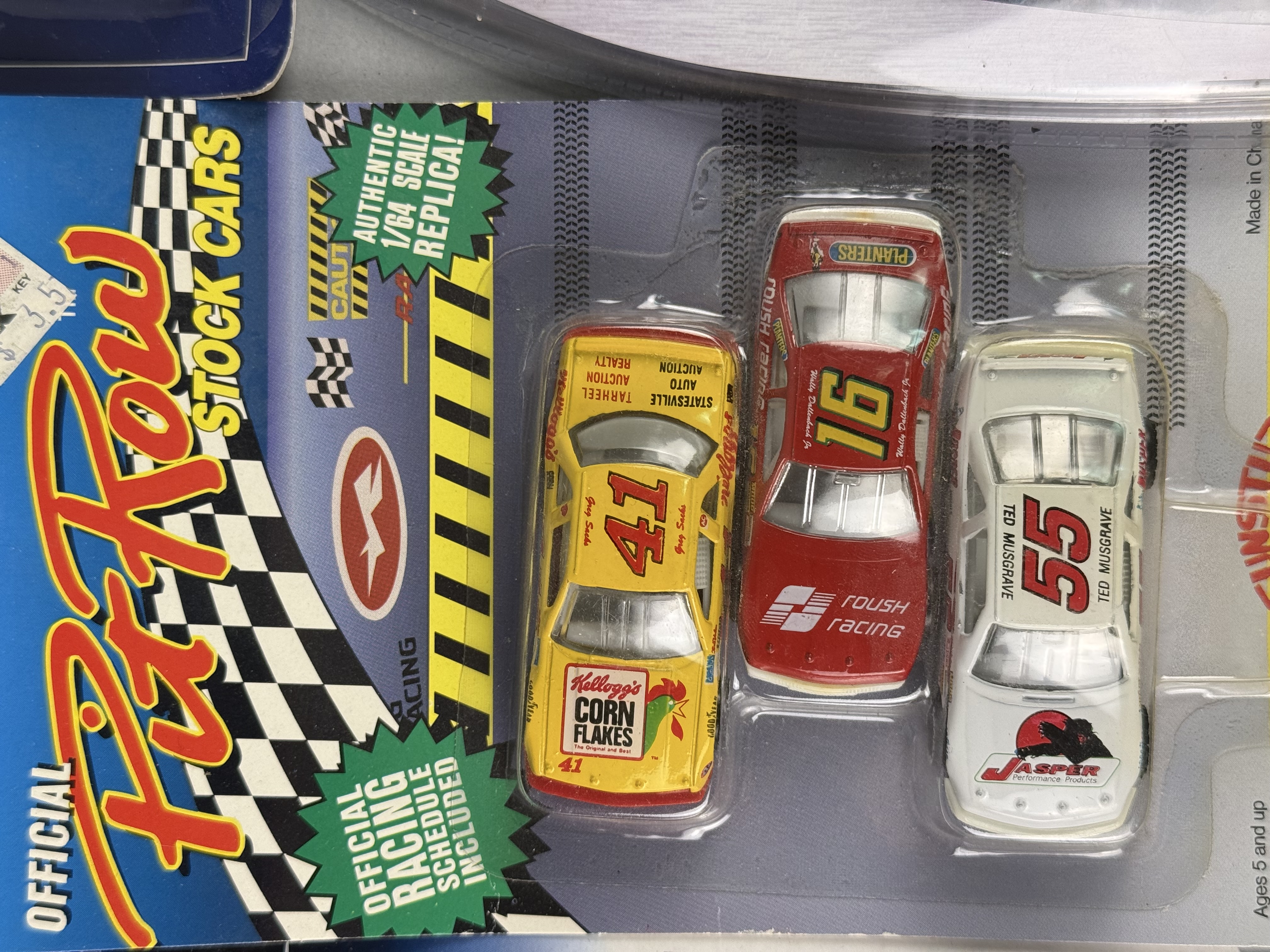 All items are in new, unopened condition within their original retail packaging. The Racing Champions box exhibits light edge wear and a “Reduced” sticker on the reverse. The Winner’s Circle Dale Jarrett blister card retains a retail price sticker. General shelf wear is present across the collection, including minor softening of card corners and light scuffing to plastic blisters, though all remain intact and clear. Paint finishes on the die-cast vehicles appear factory-fresh.