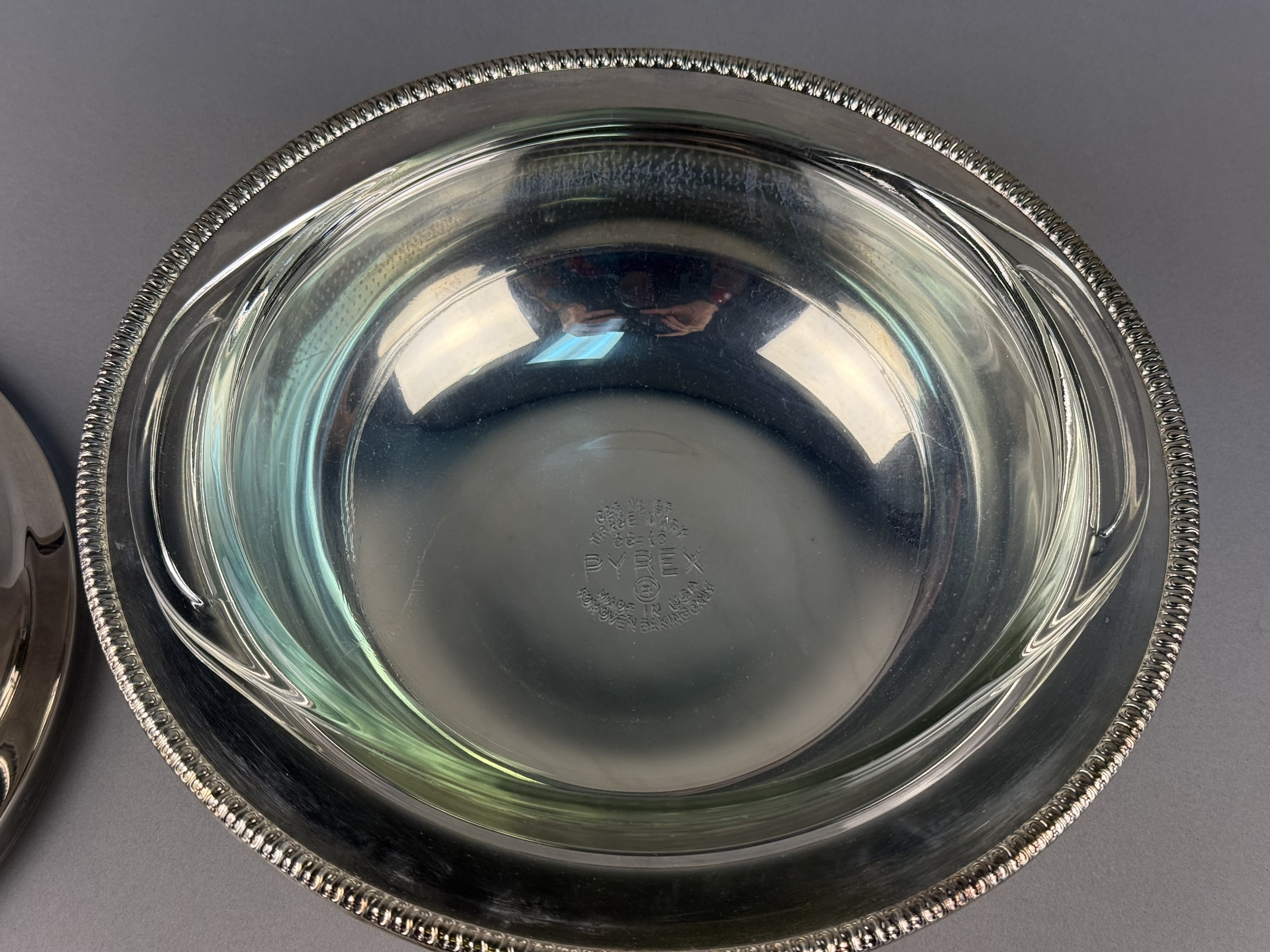 Rogers Silver-Plated Lidded Serving Dish with Pyrex Glass Liner