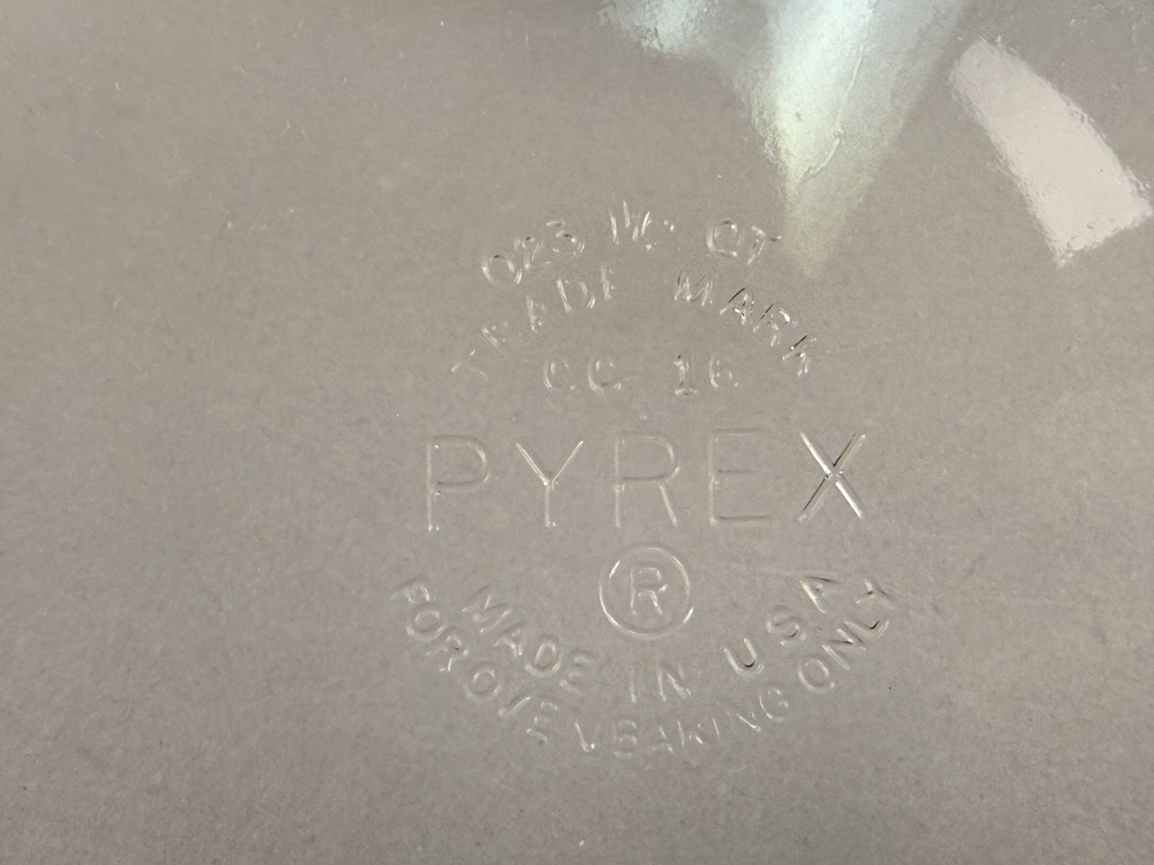A silver-plated lidded serving dish with a clear glass liner. The circular metal base and dome-shaped lid feature a decorative gadrooned border. The lid is surmounted by an ornate foliate-style handle. The interior contains a clear molded glass dish with integrated tab handles. The metal base is stamped with the name ROGERS flanked by anchor symbols. The glass liner is embossed on the underside with the text PYREX, 023 1 1/2 QT, TRADE MARK, CC 16, MADE IN USA, and FOR OVEN BAKING ONLY.