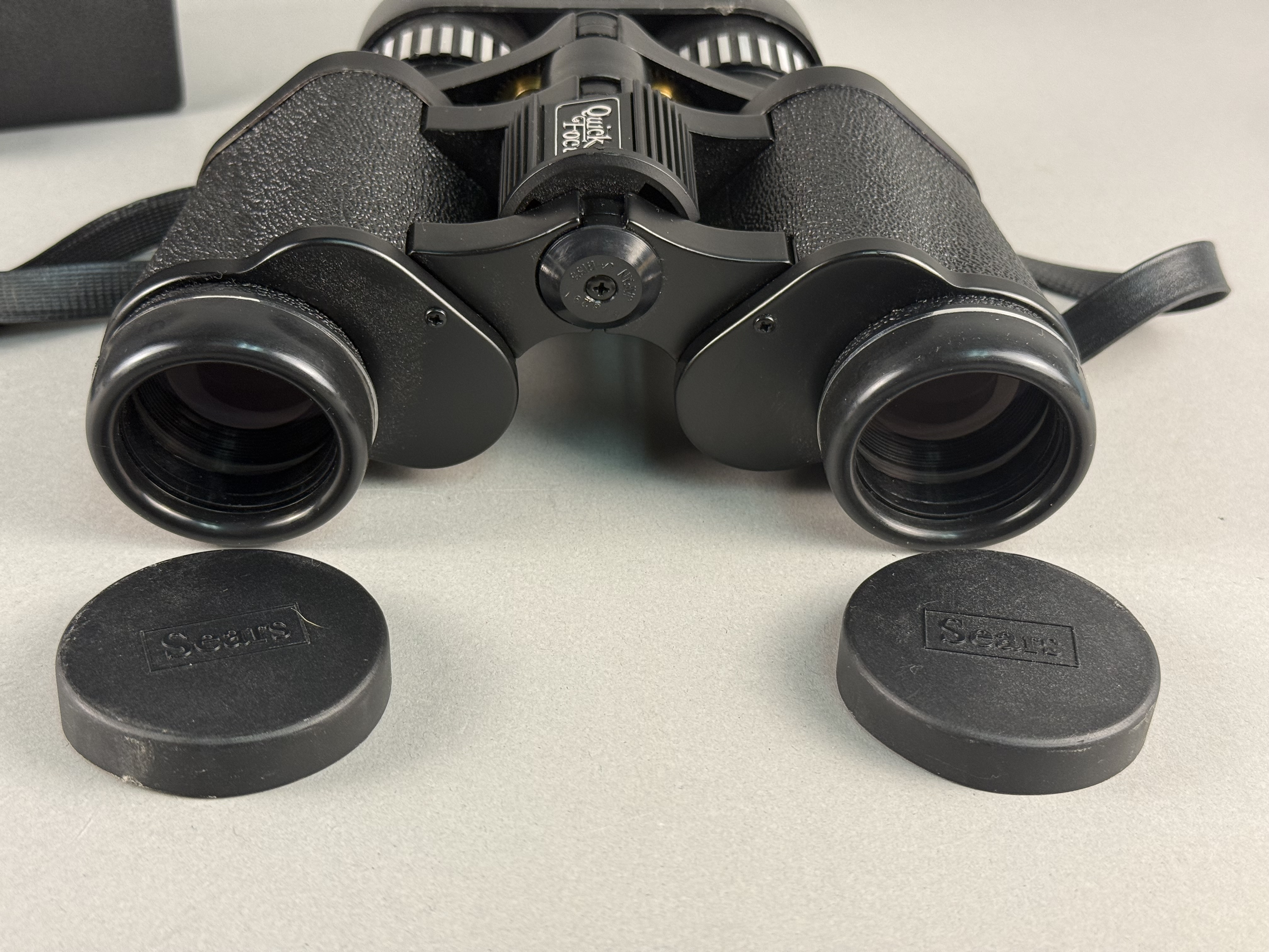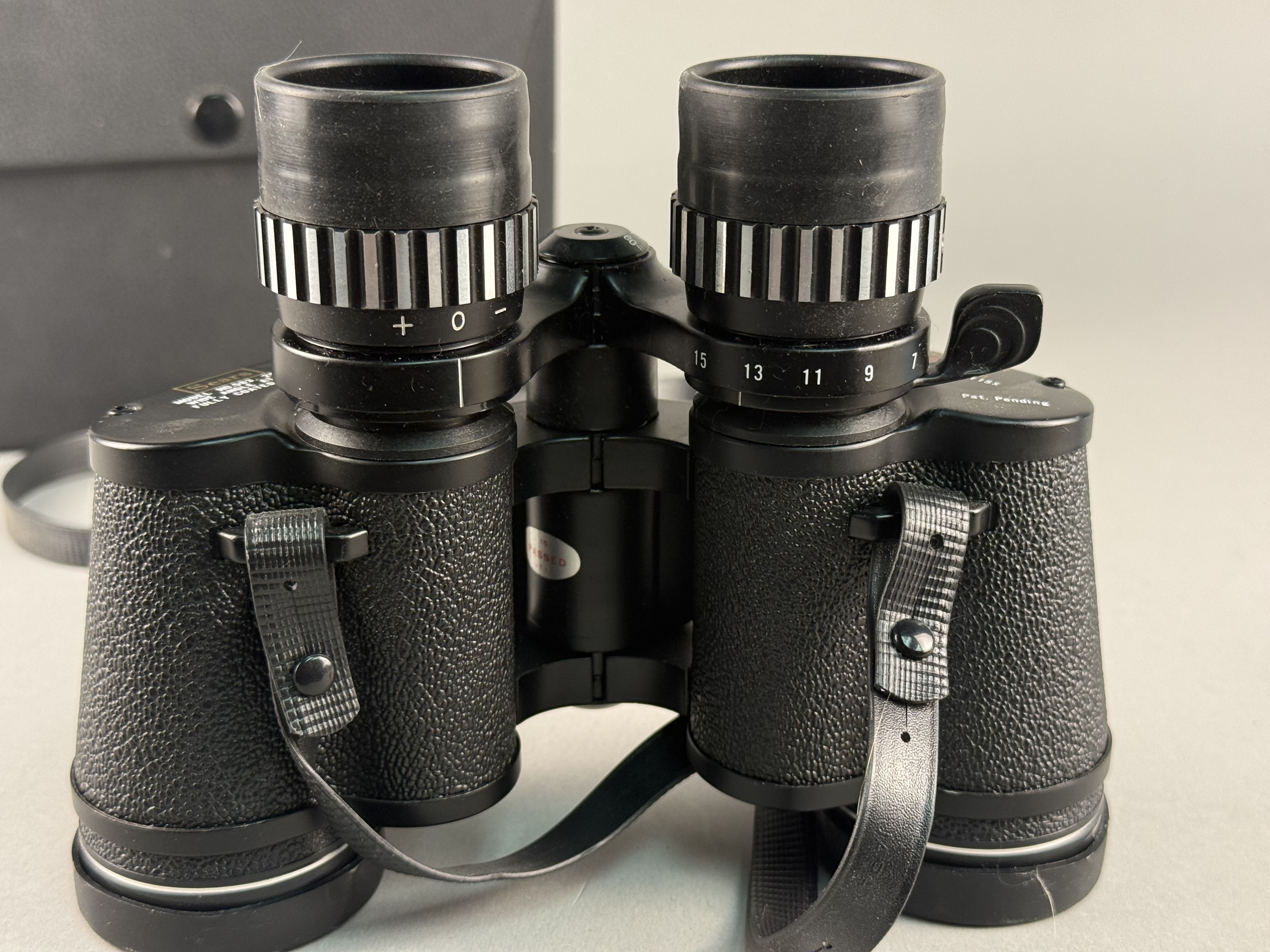 The binoculars and accessories are in good cosmetic condition with light signs of age and use. The external optical surfaces