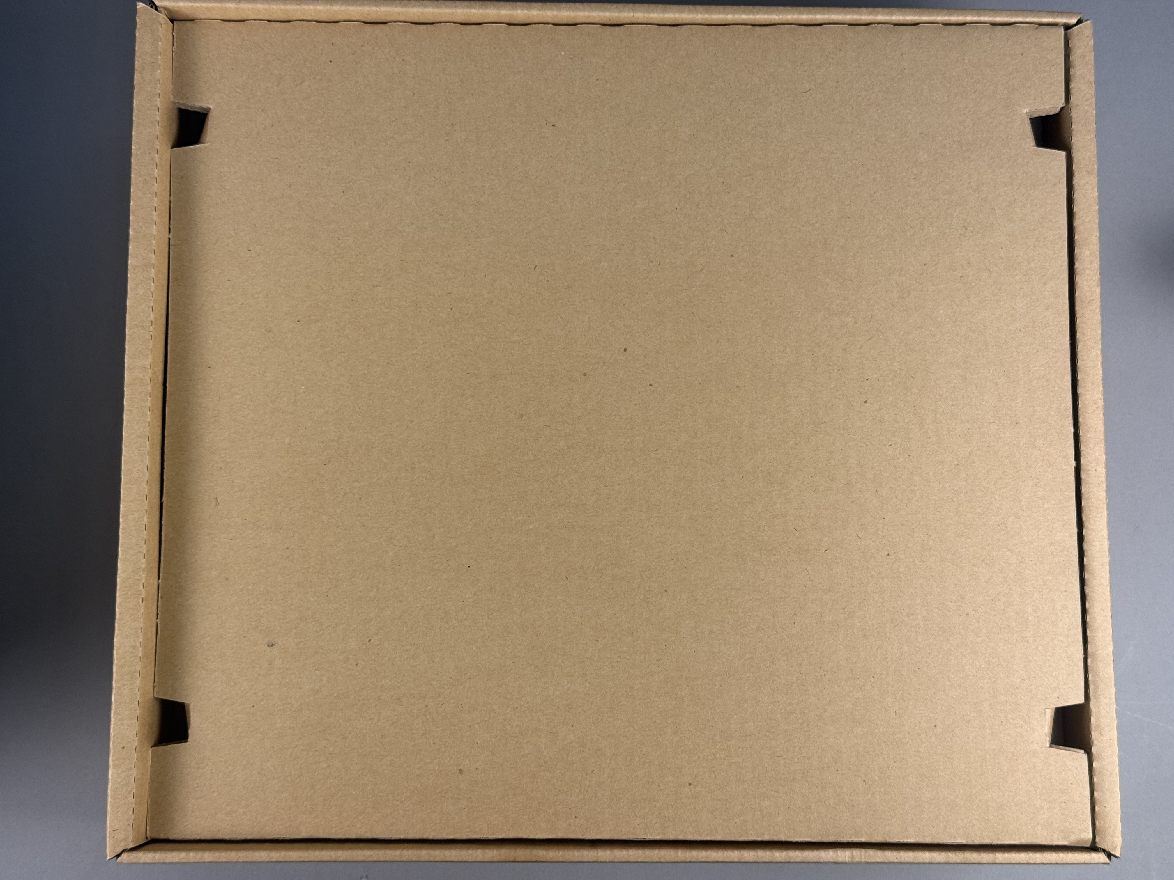The original retail box shows significant signs of age and shelf wear, characterized by scuffing and whitening along the edges and corners. A rectangular cutout measuring approximately 2 inches by 1.5 inches is present on the bottom panel of the outer box. A vintage retail price sticker is located on the side panel. The internal cardboard tray and printed manual remain in stable condition.