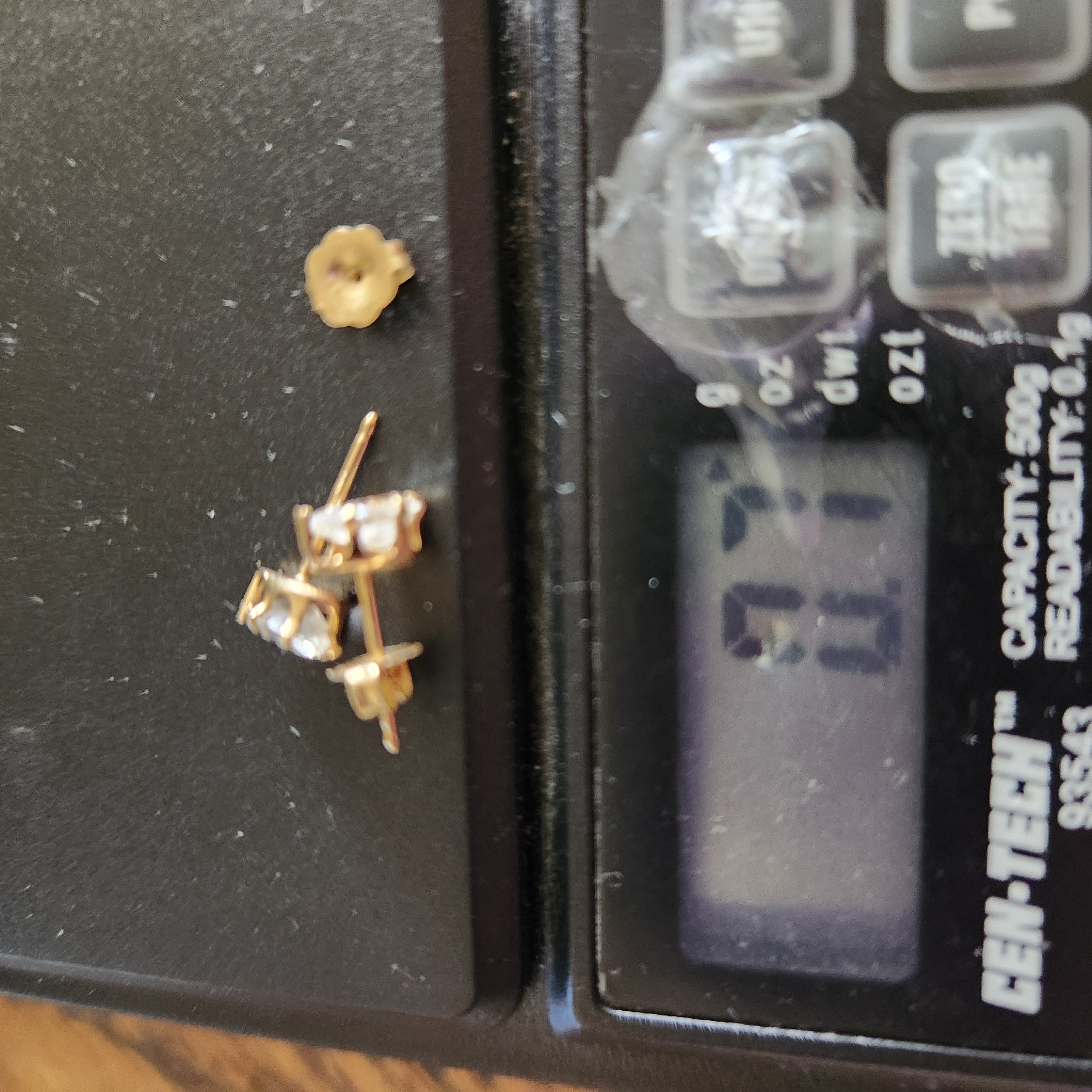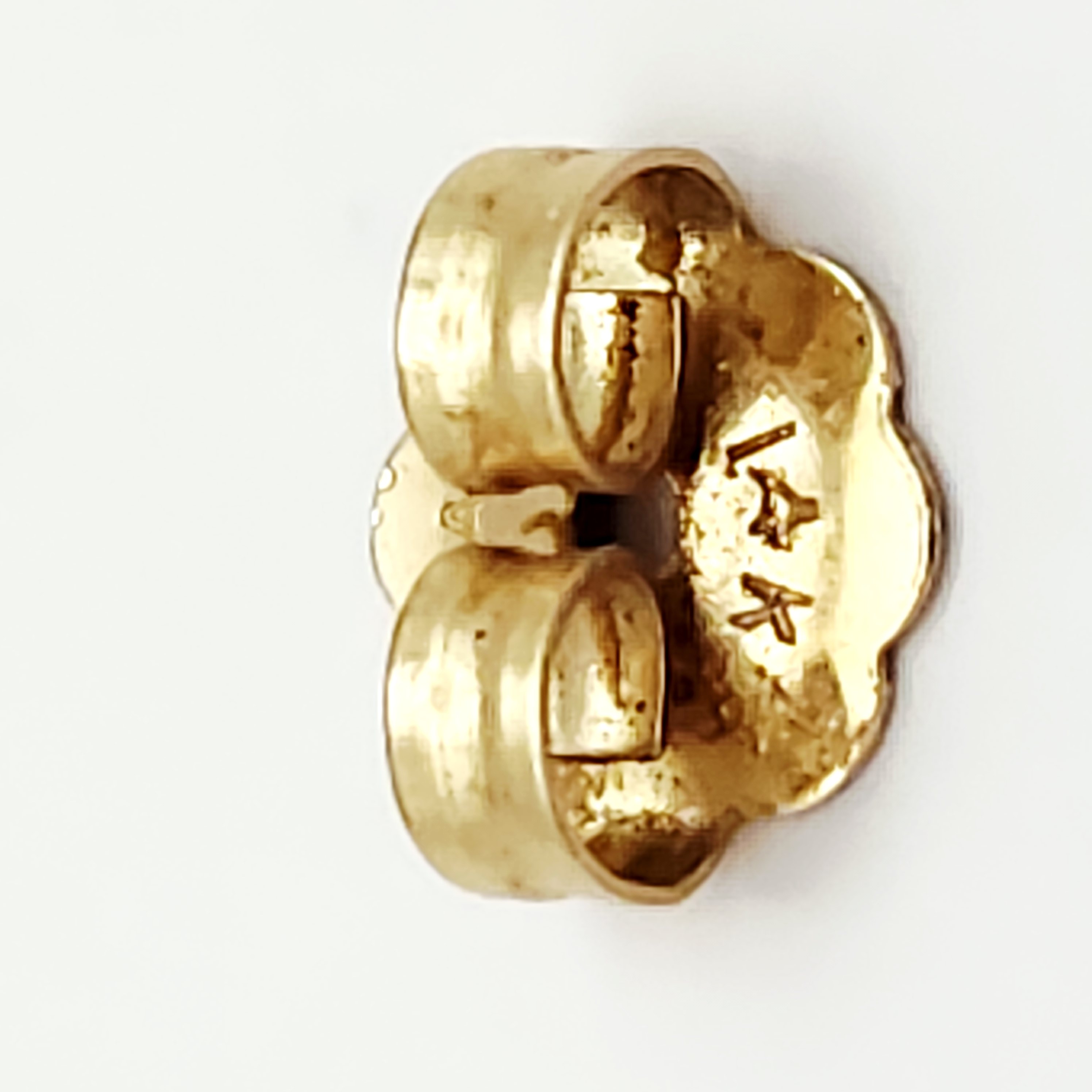 The earrings are in good condition. There is minor surface wear and light scratches to the gold settings and backings consistent with previous use. The gemstones appear securely set and the posts are in good working order.