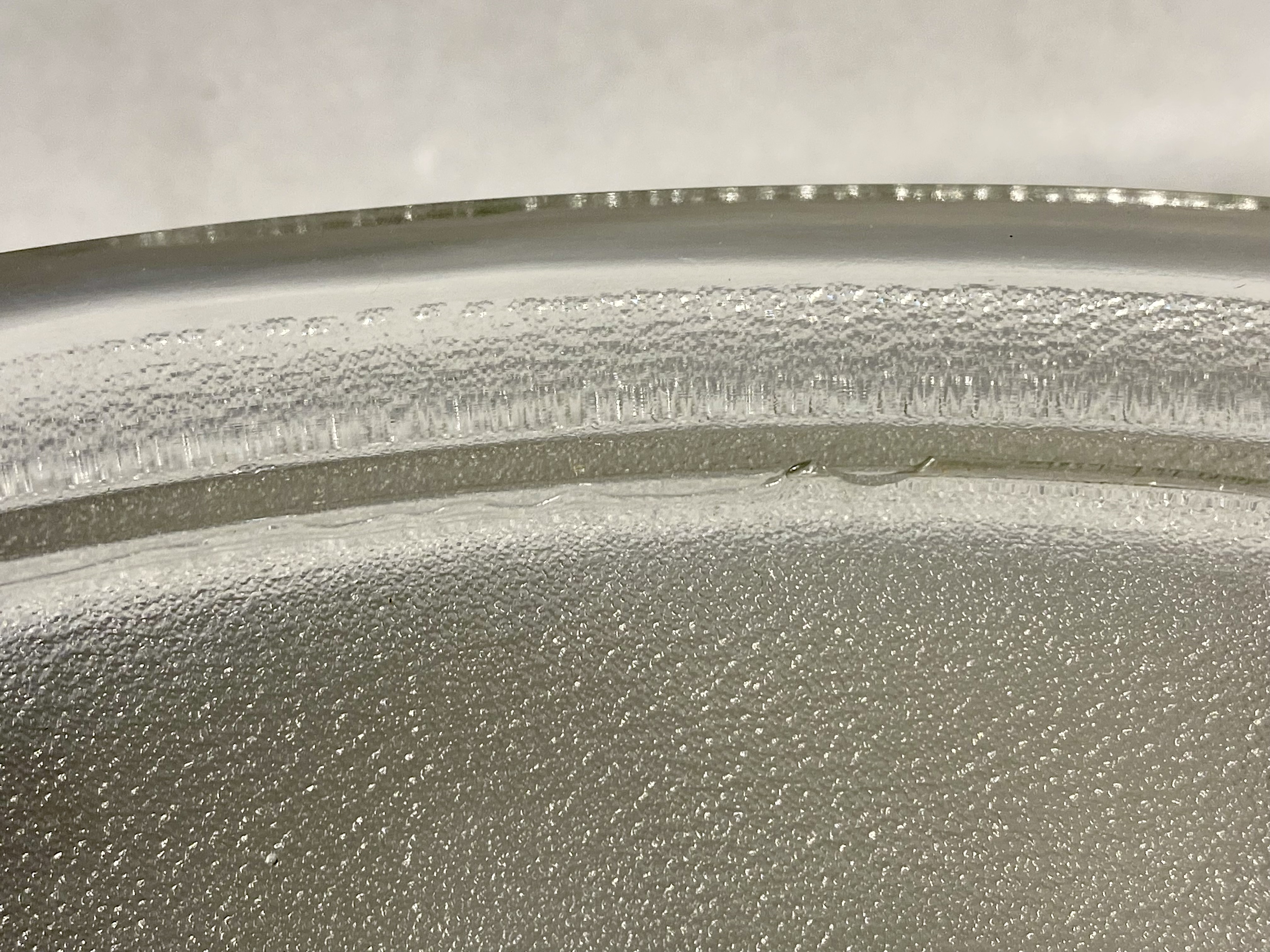 The piece is in generally good condition. A close-up inspection reveals a small chip or internal fracture on the inner rim flange of the lid; this remains largely obscured when the lid is properly seated on the base. No other significant chips, cracks, or repairs are visible.