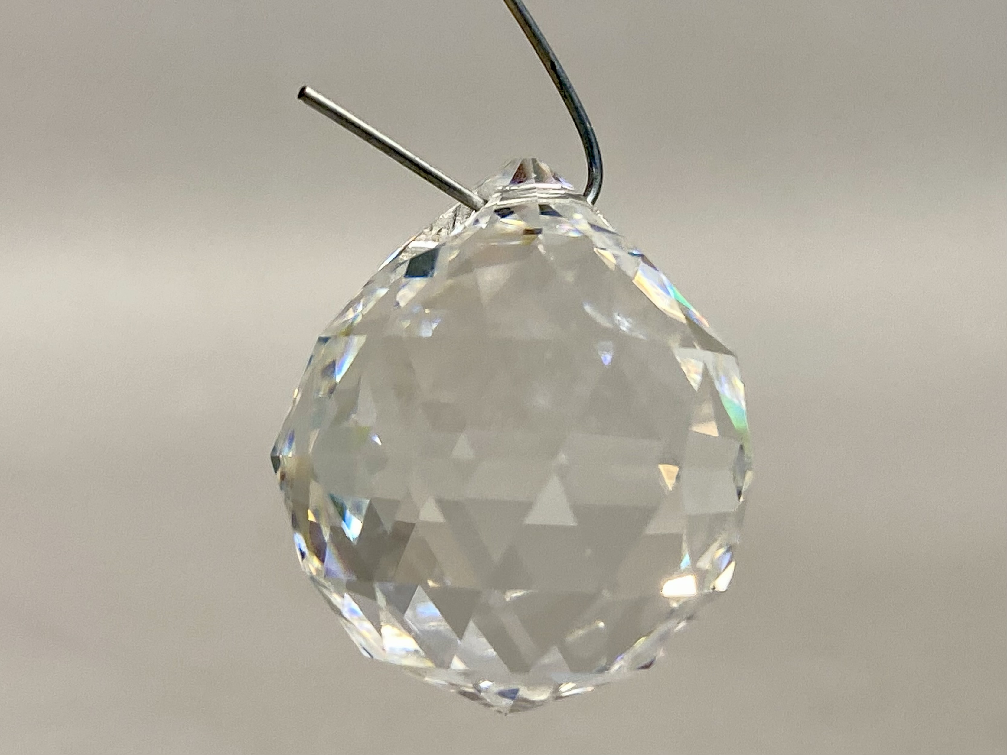 The ornaments are in good condition overall. There are no visible chips, cracks, or significant scratches to the glass or crystal surfaces. The gold-toned metal caps show minor surface wear and patina consistent with age and use.