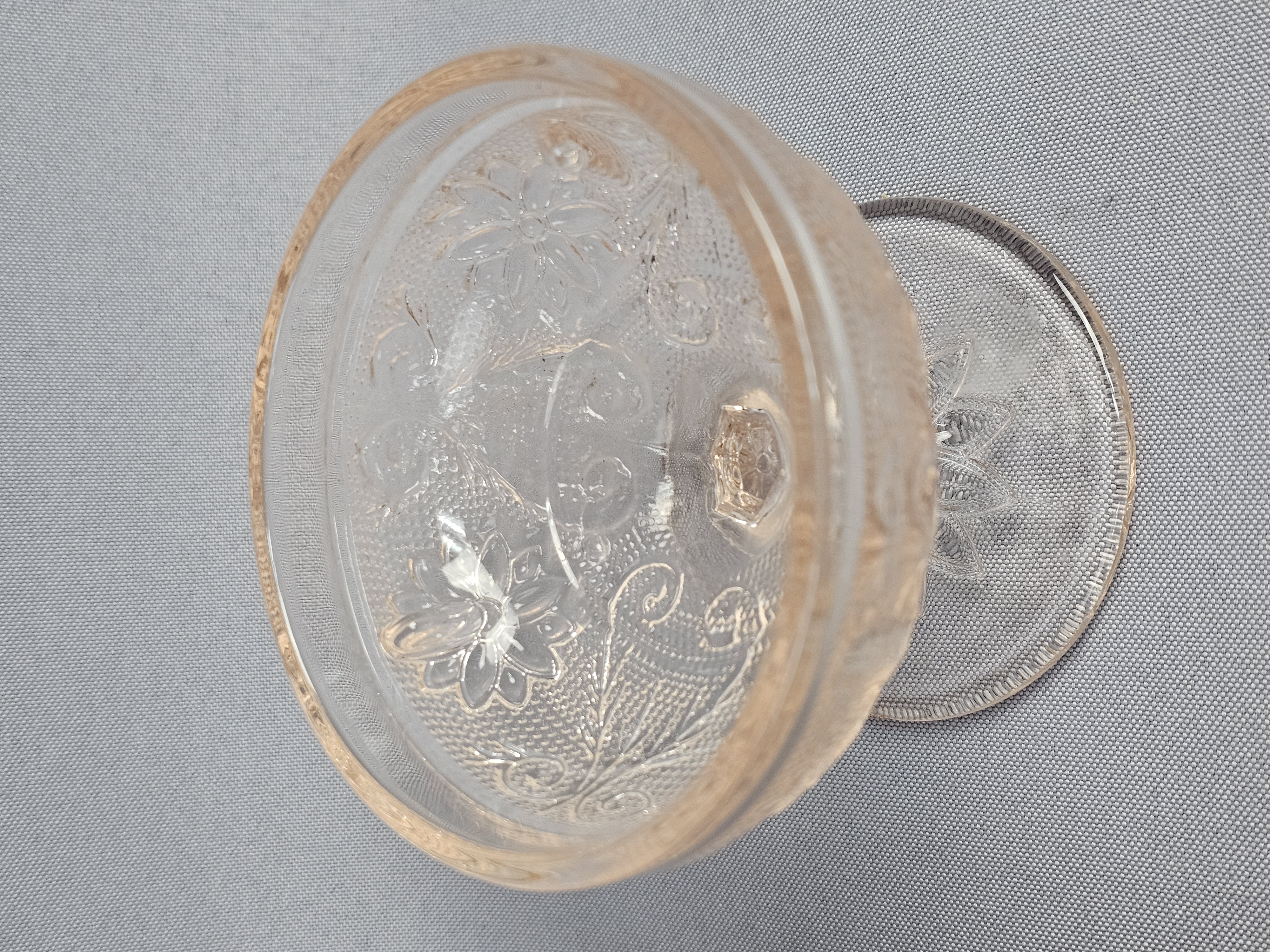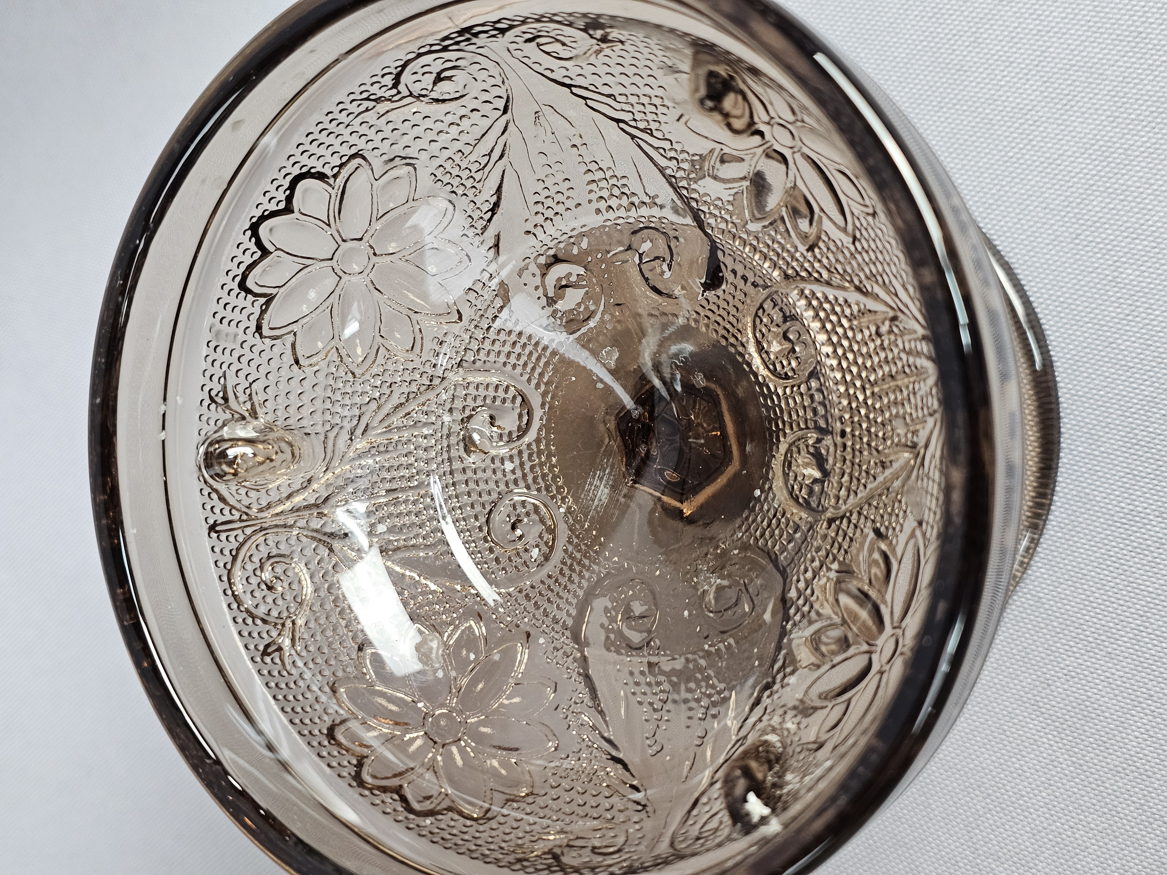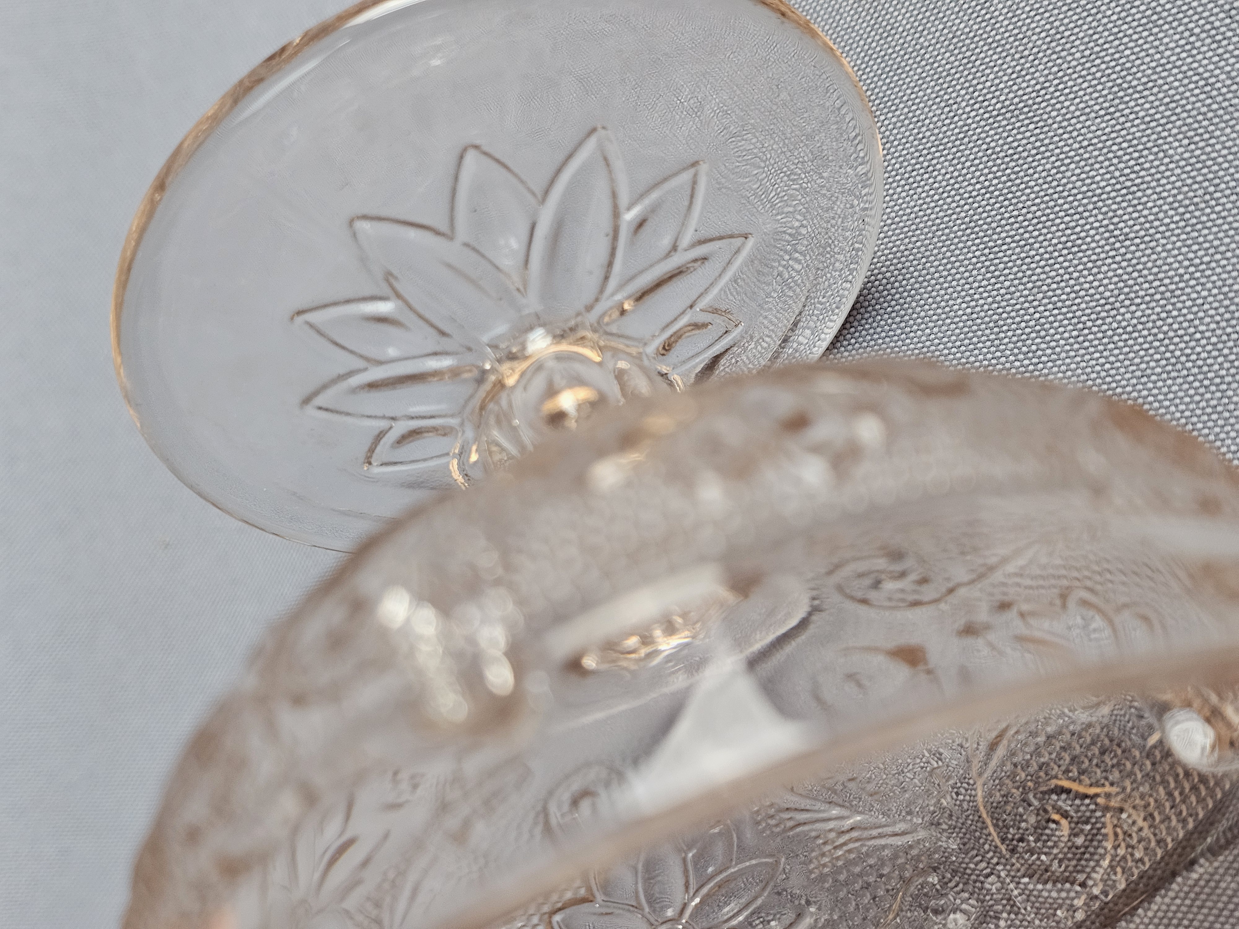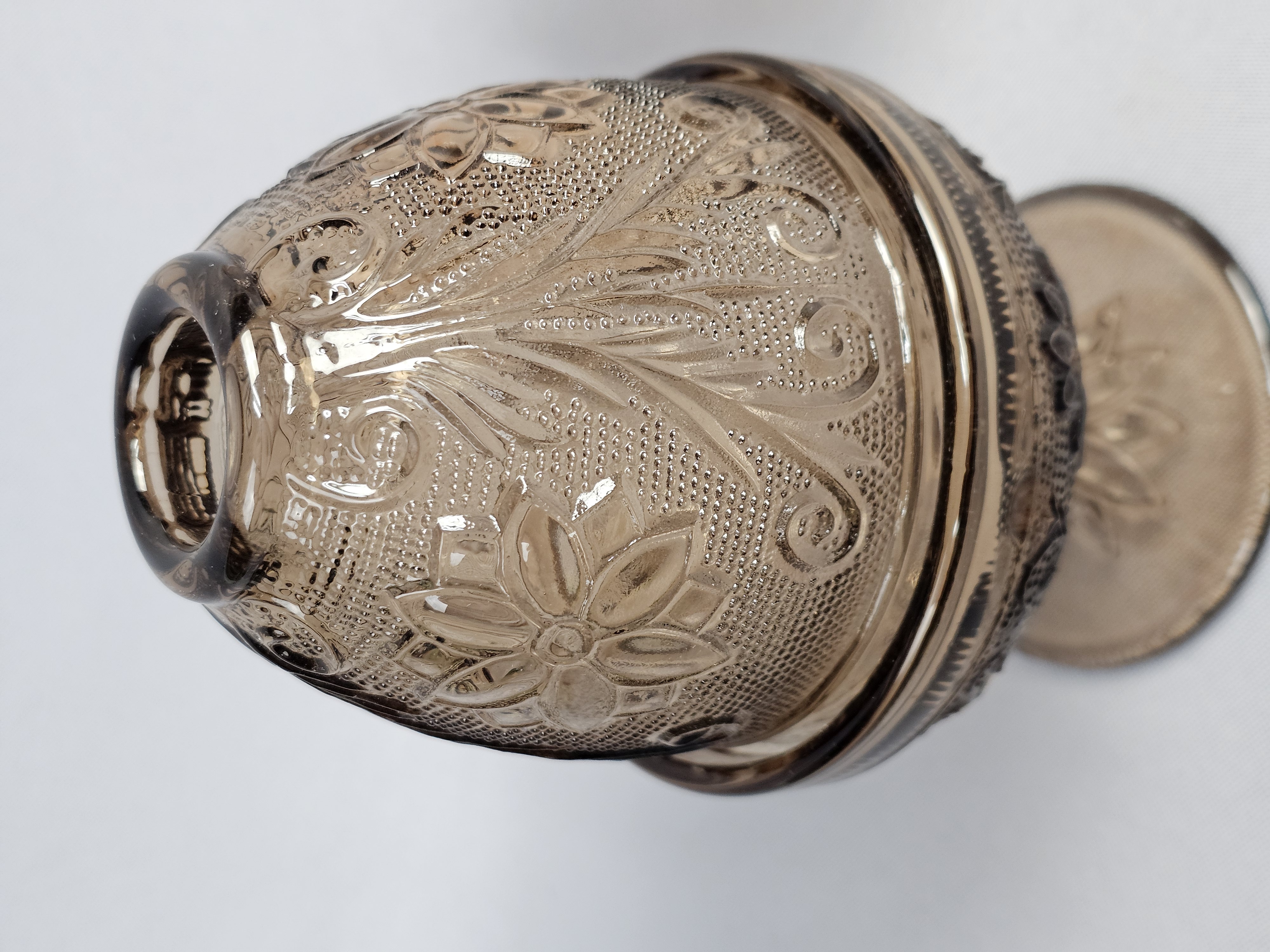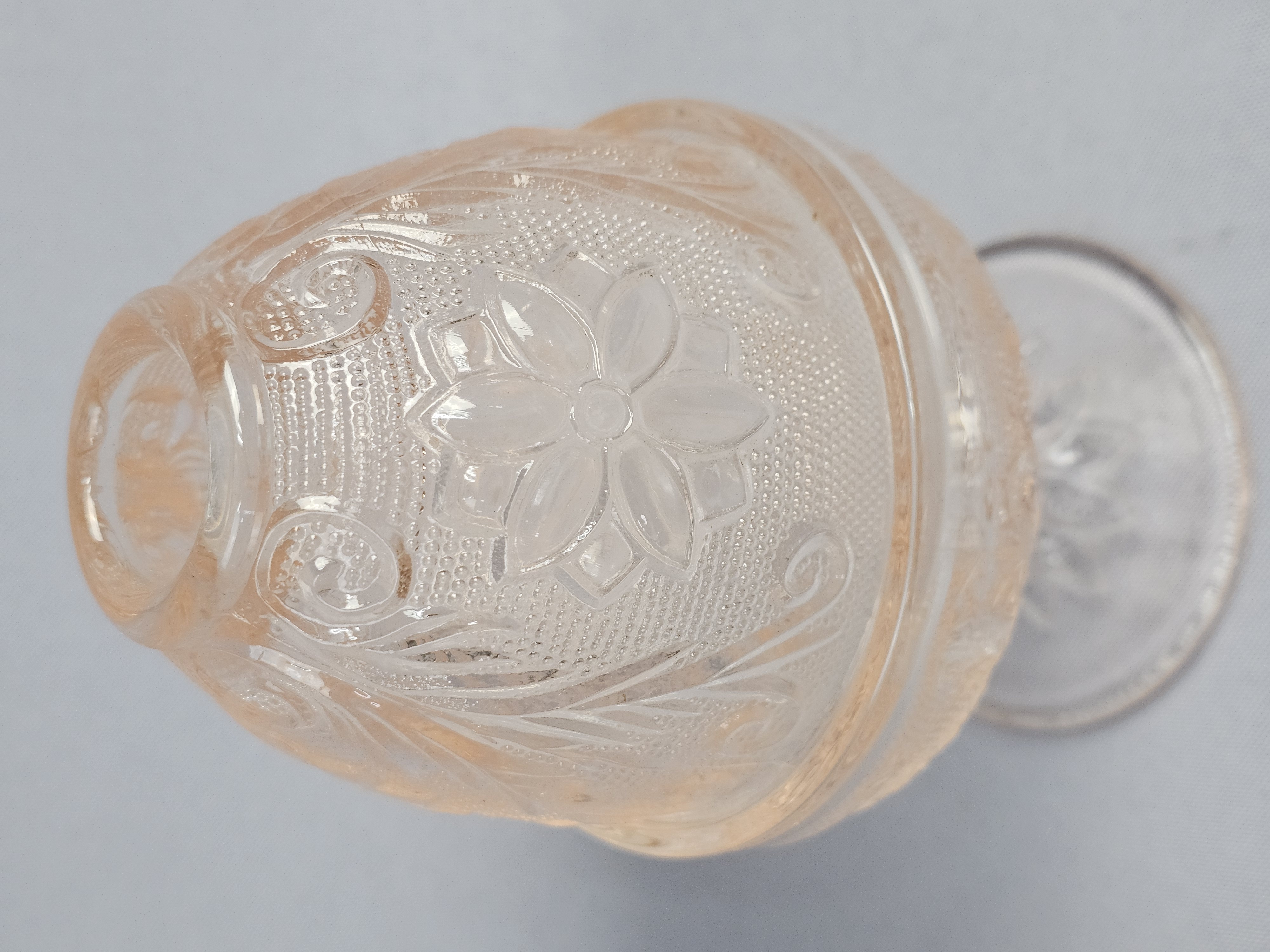 Overall good condition. The darker one has a chip on the bottom of the base near edge.