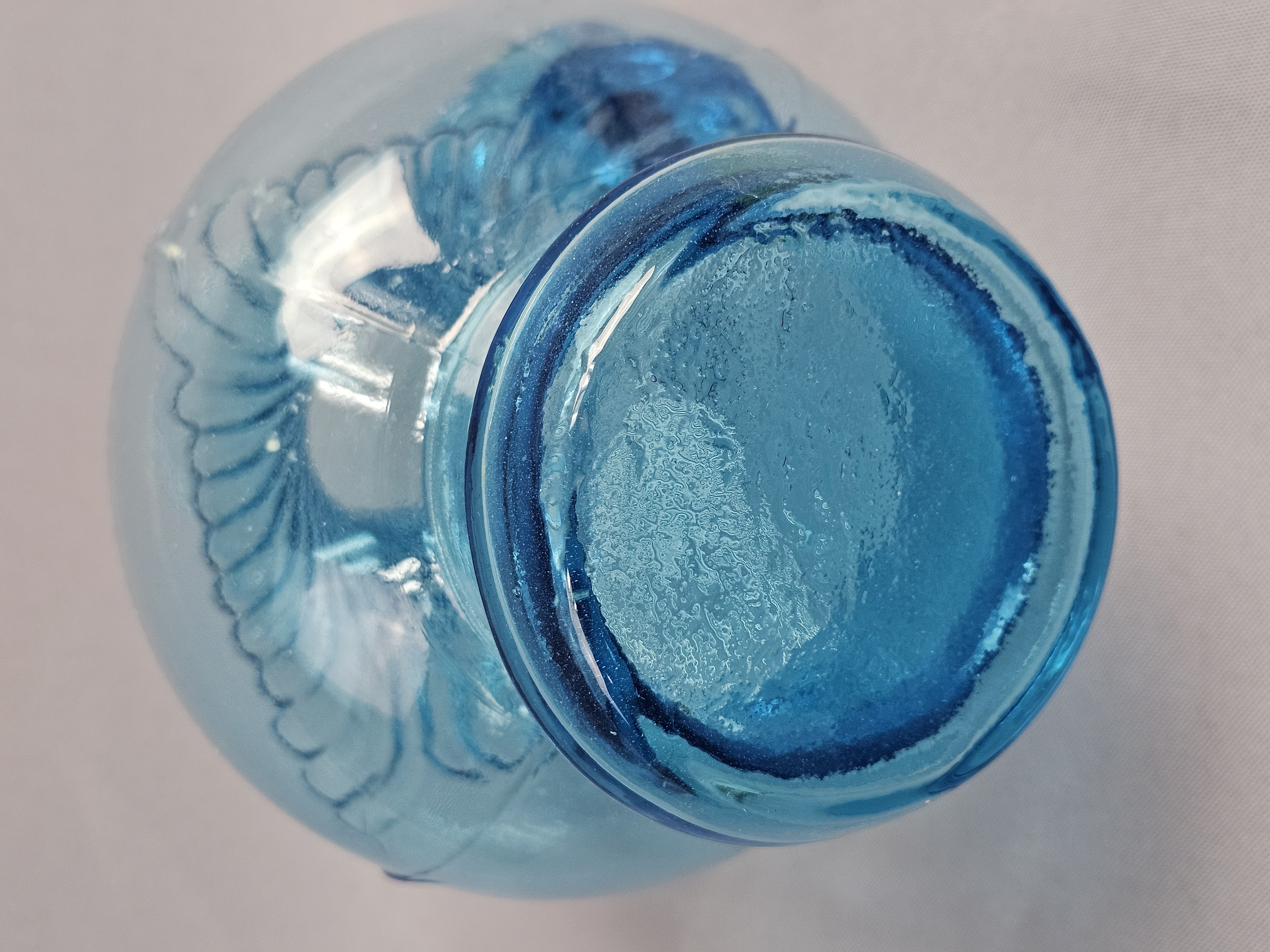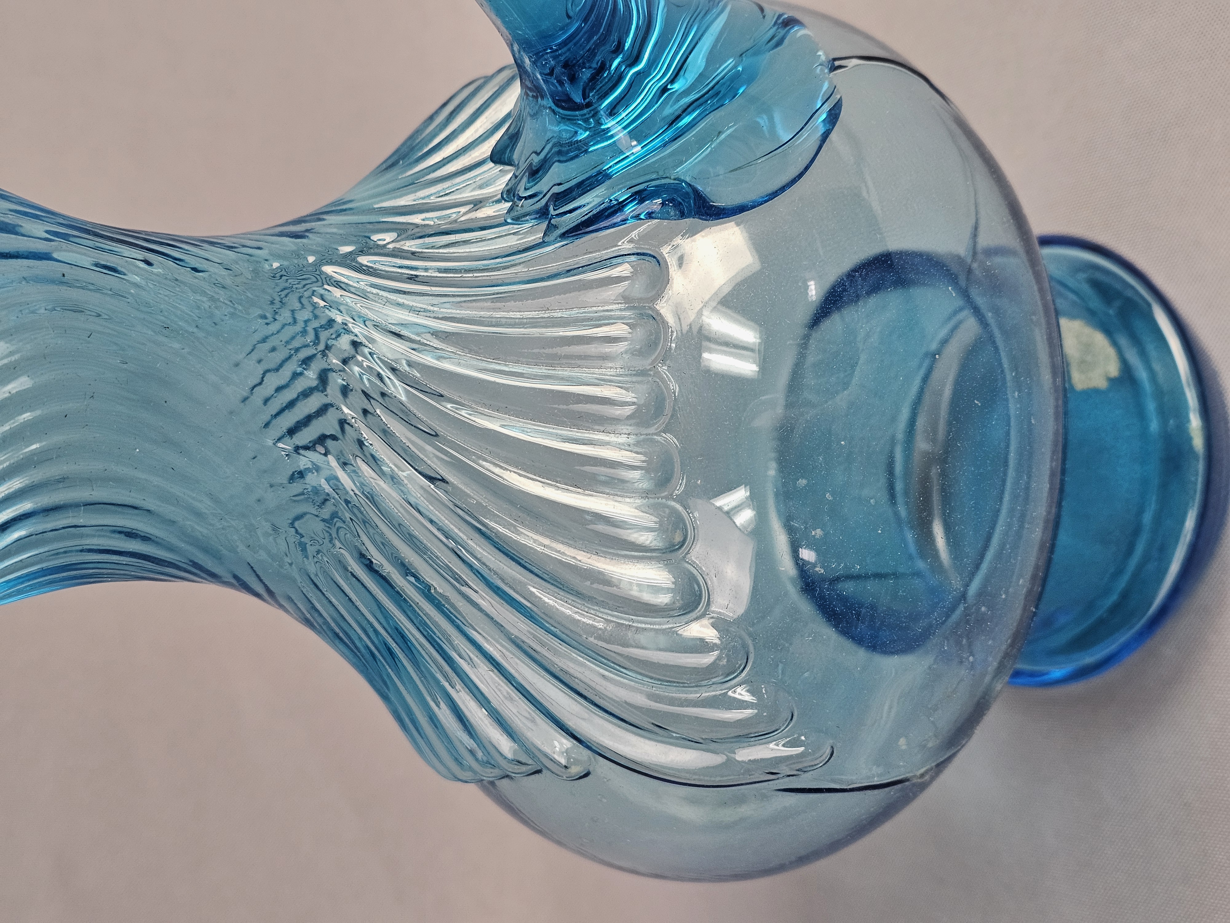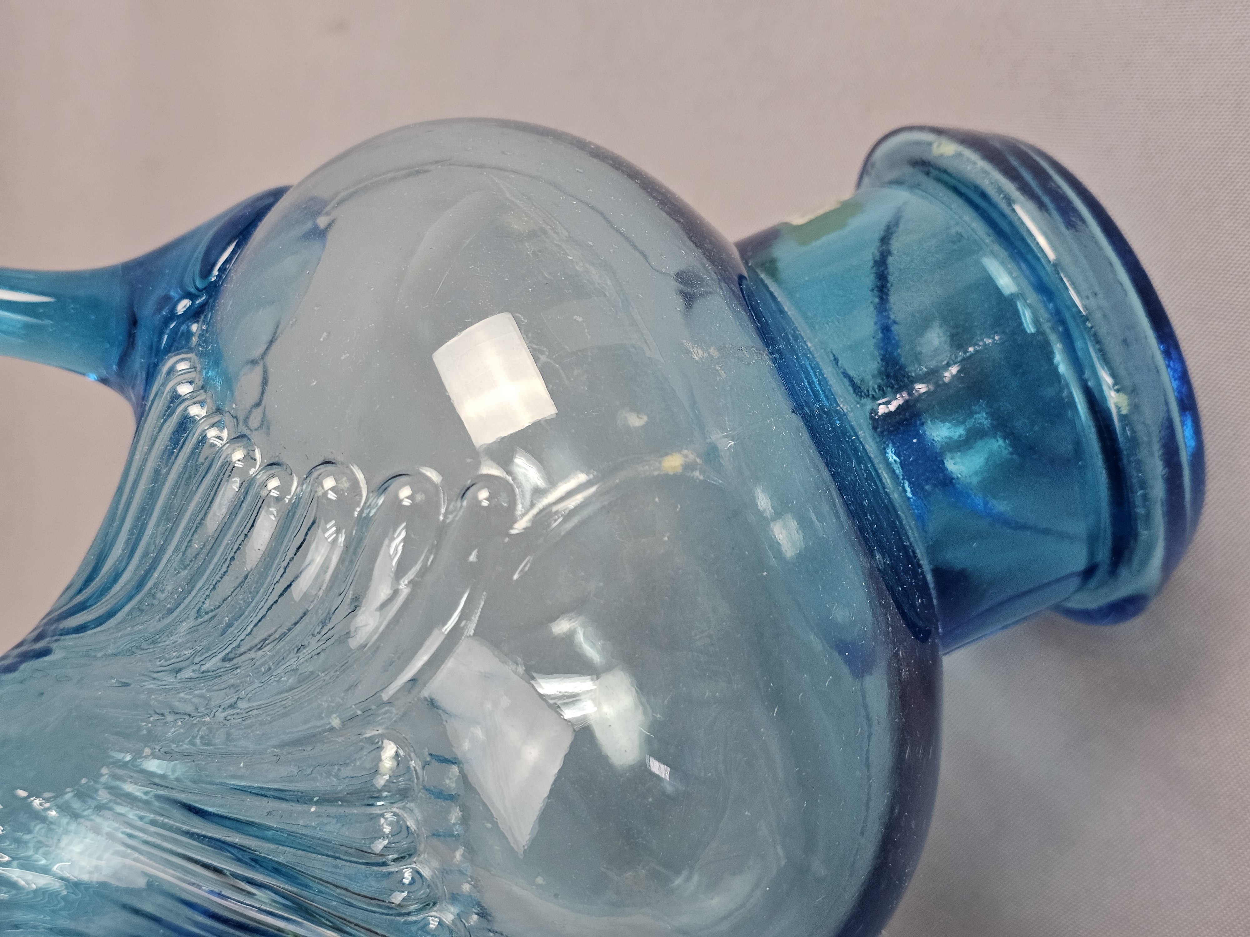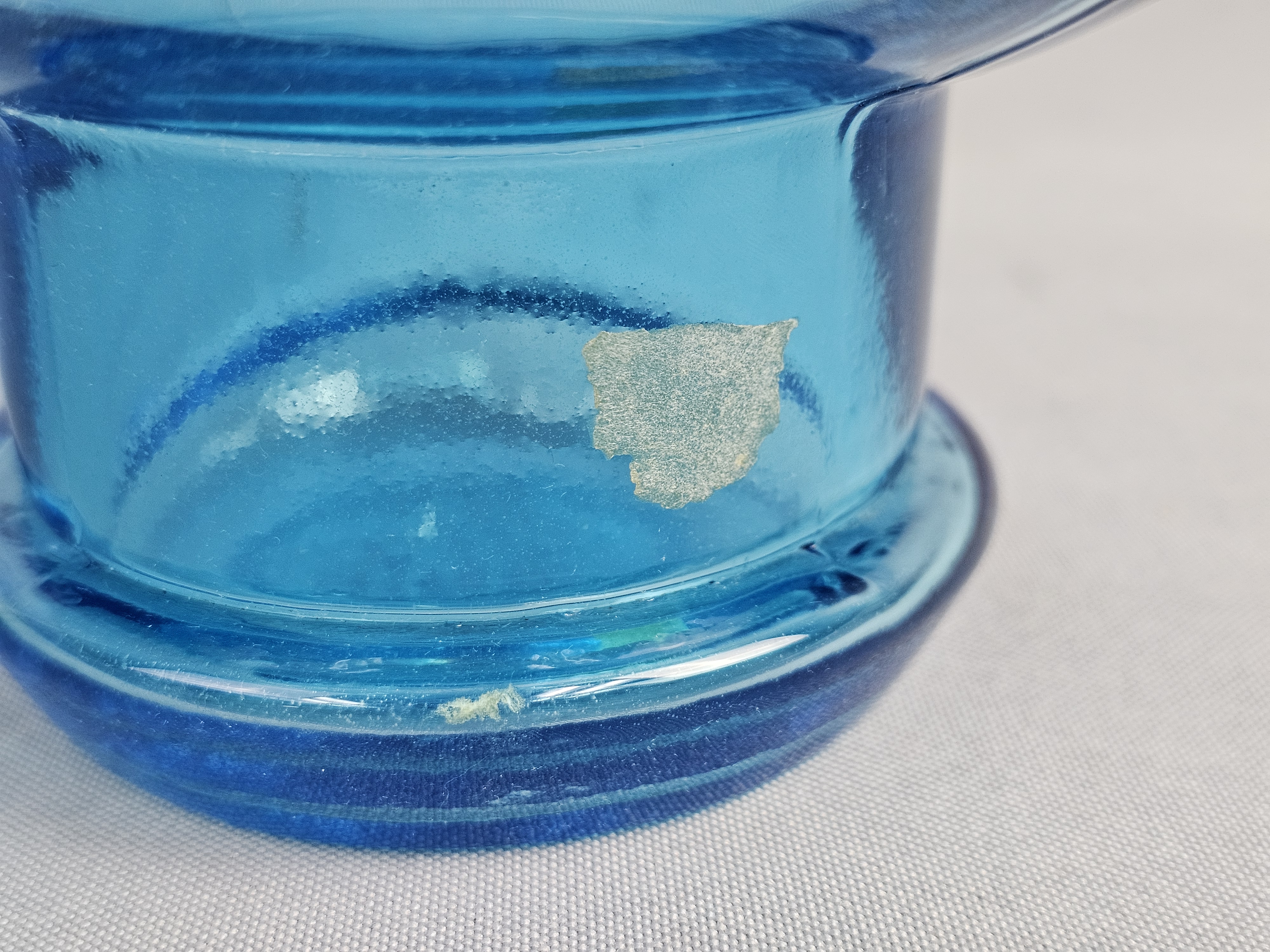 No chips, cracks, or repairs are visible. One item has a small amount of adhesive residue from a former paper label on the lower body. Standard light shelf wear is present on the bases of both items.