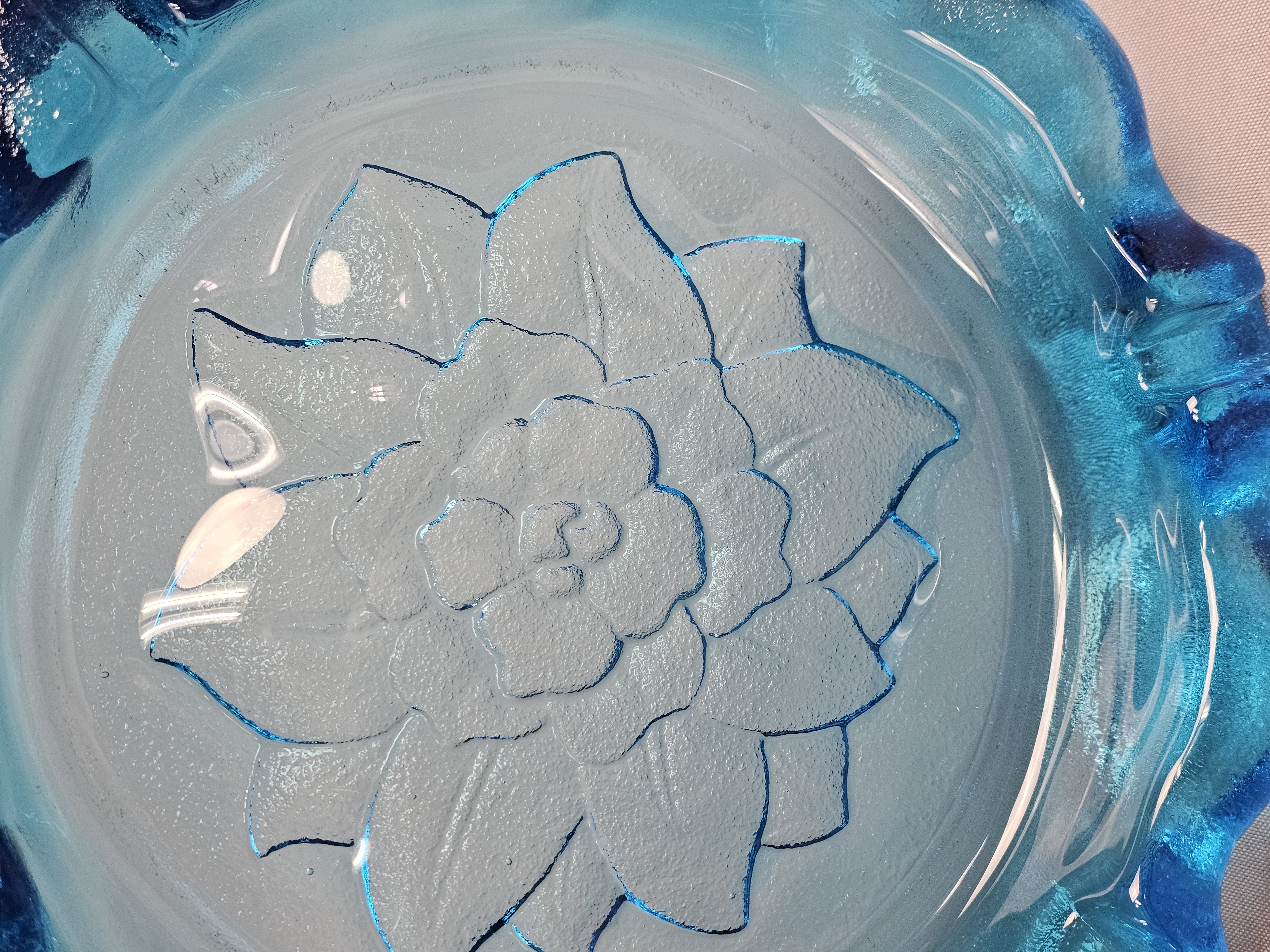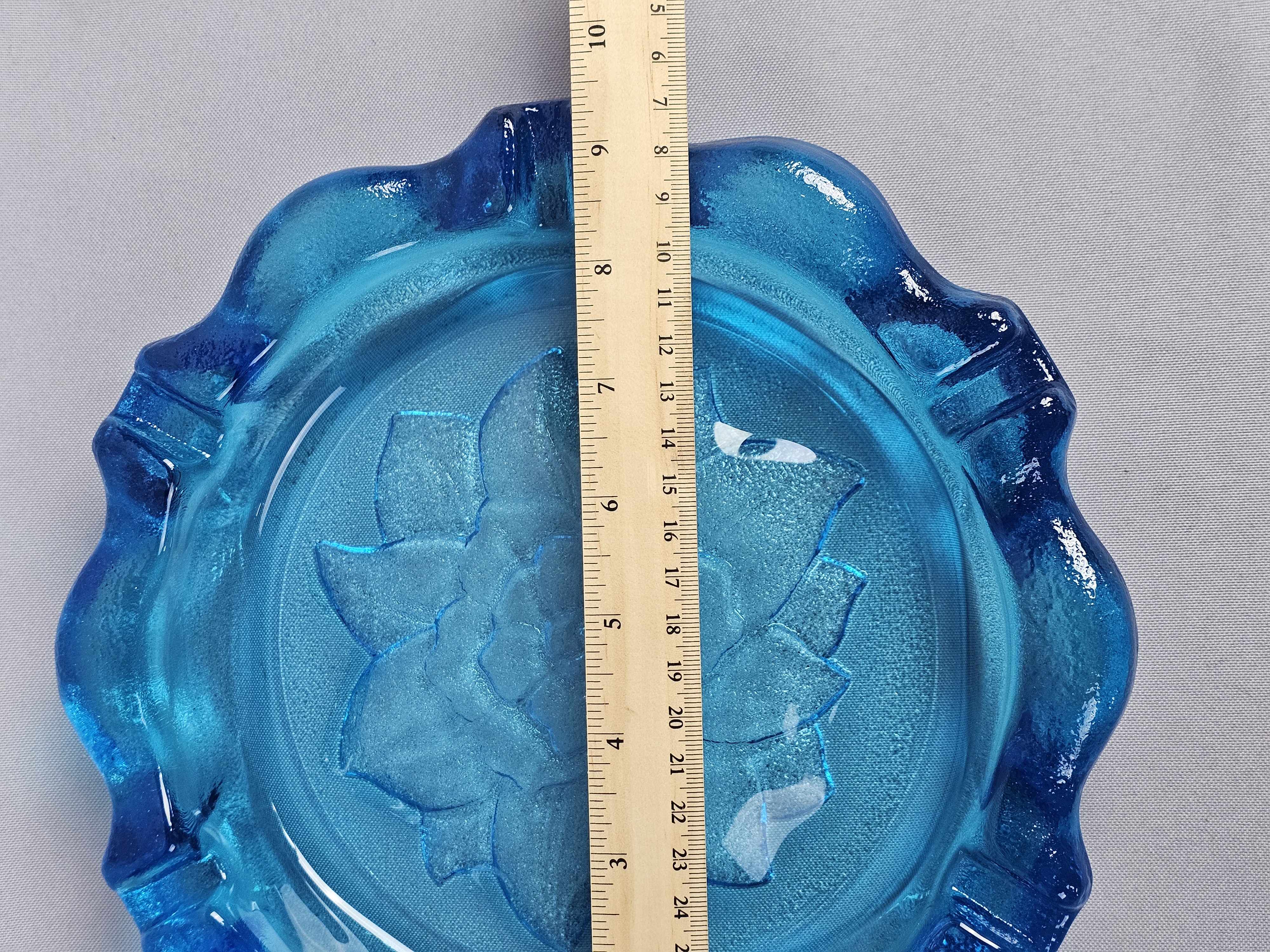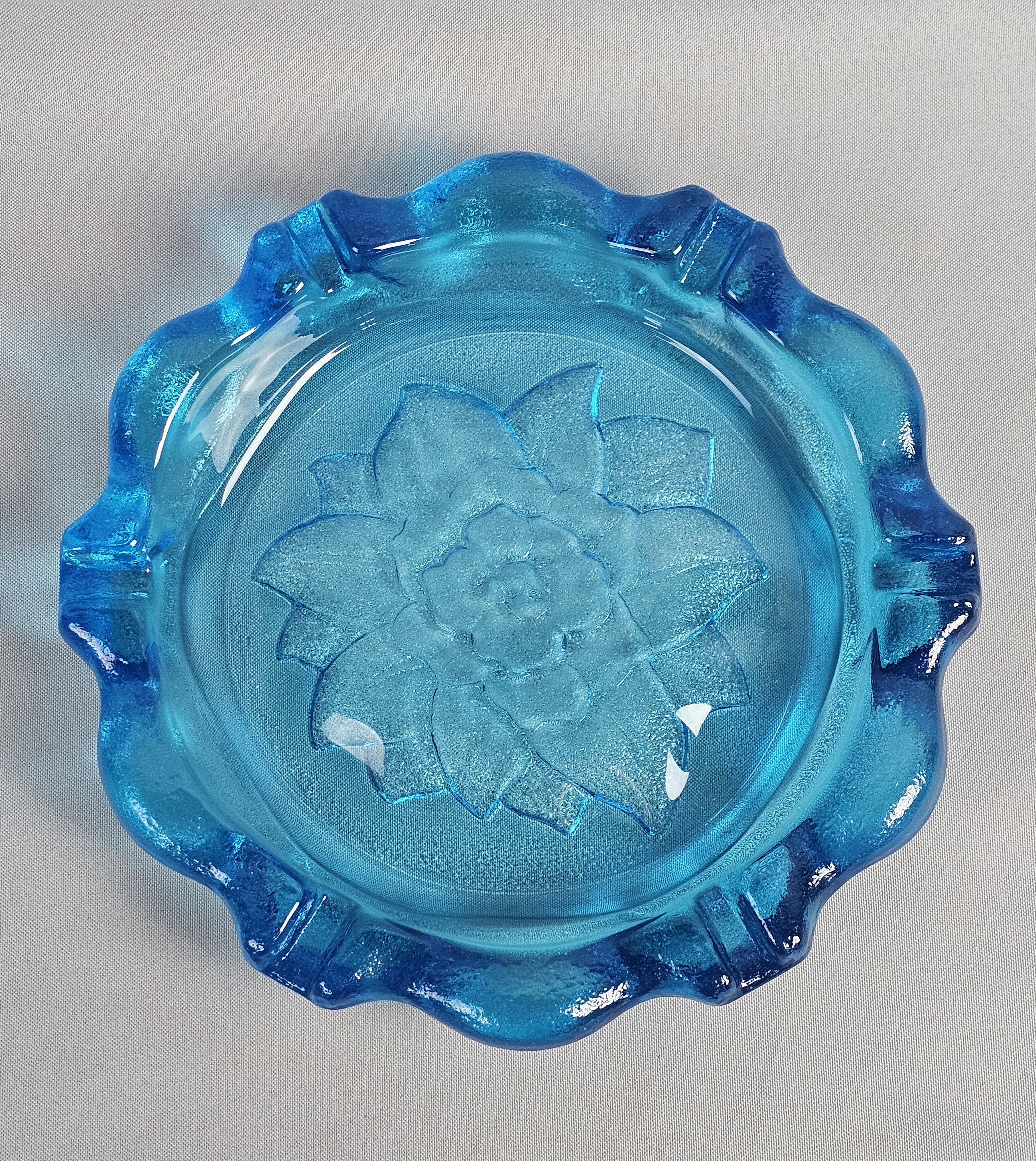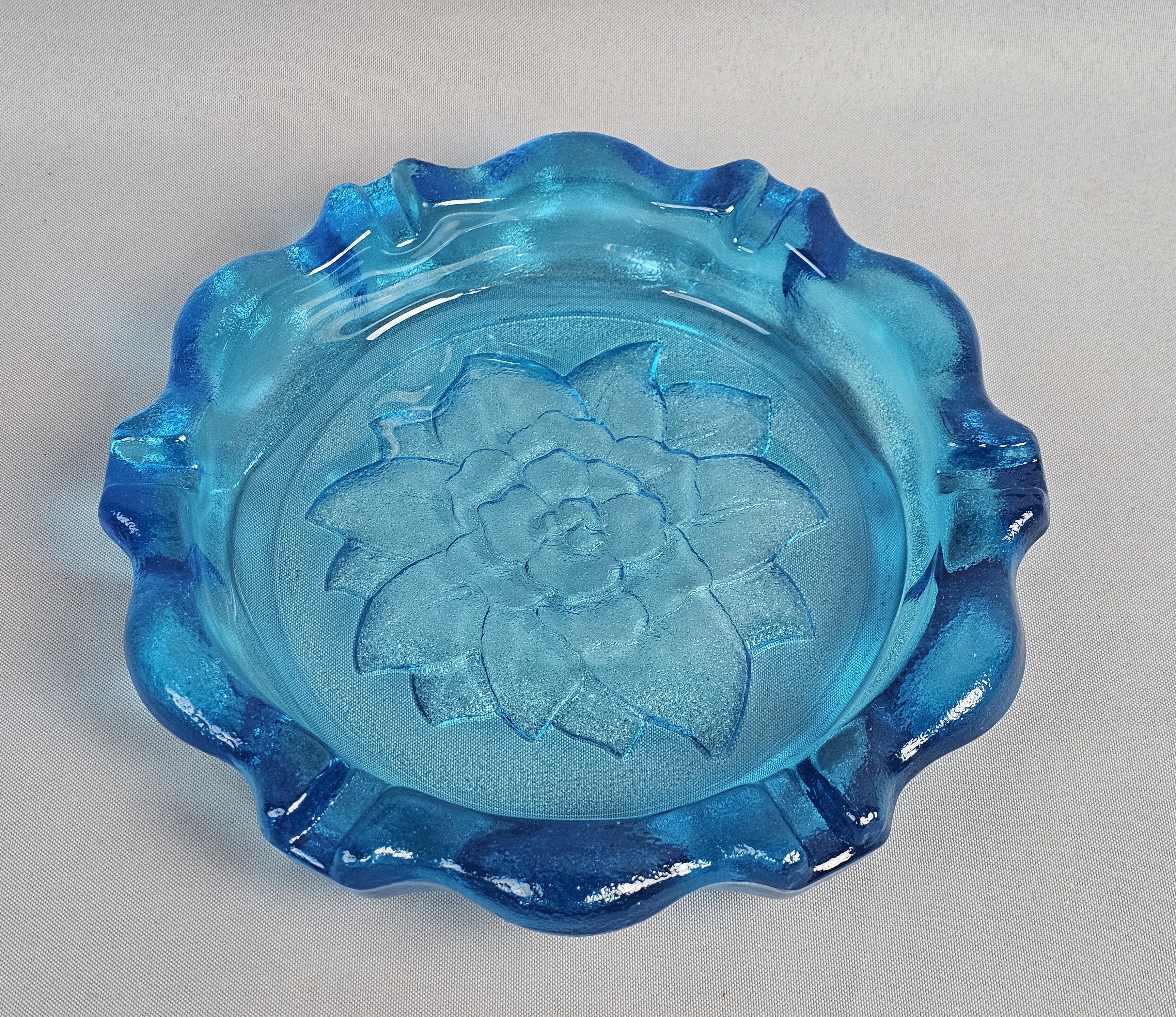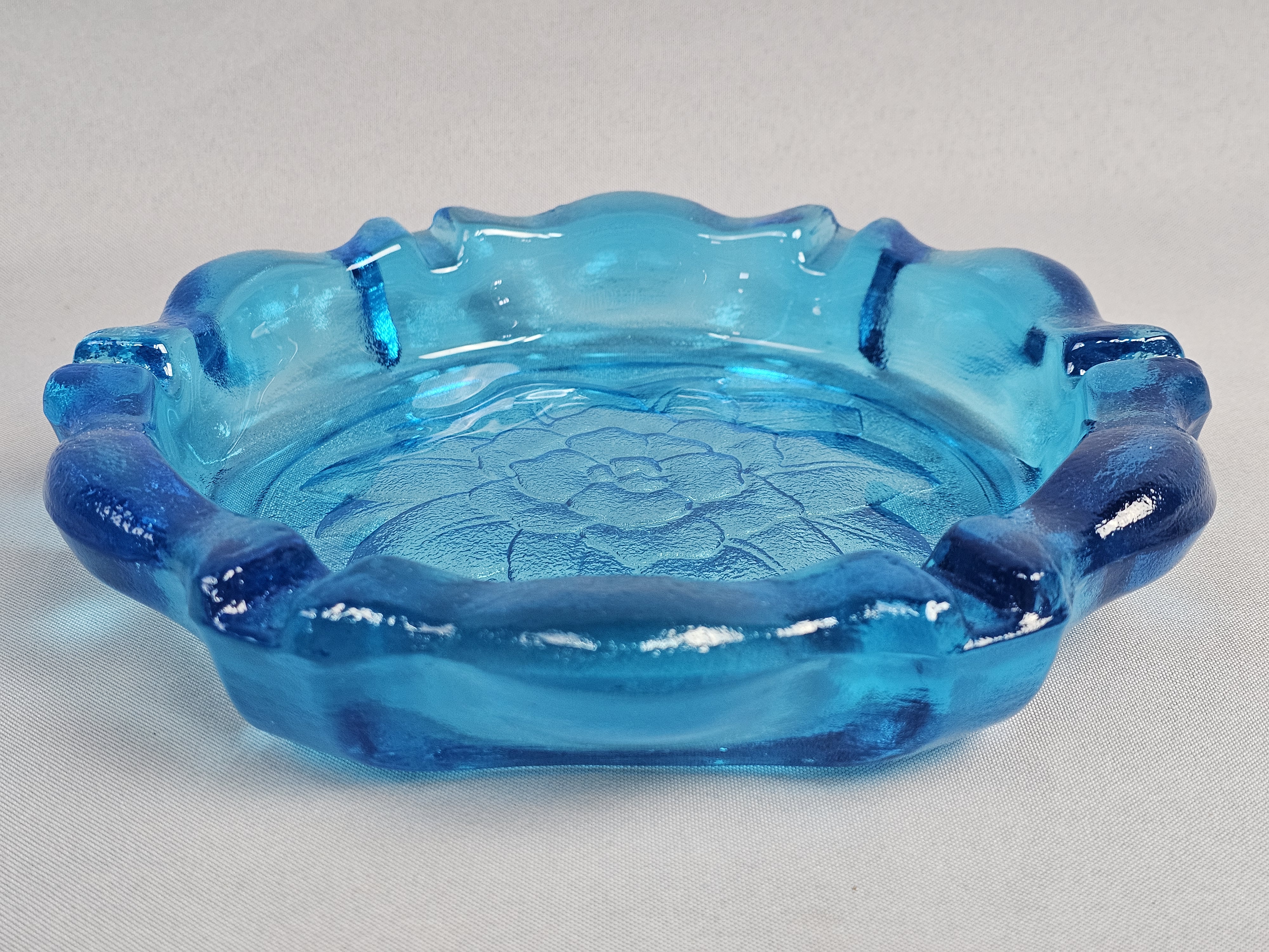 Large Blue Pressed Glass Ashtray Attributed to Indiana Glass