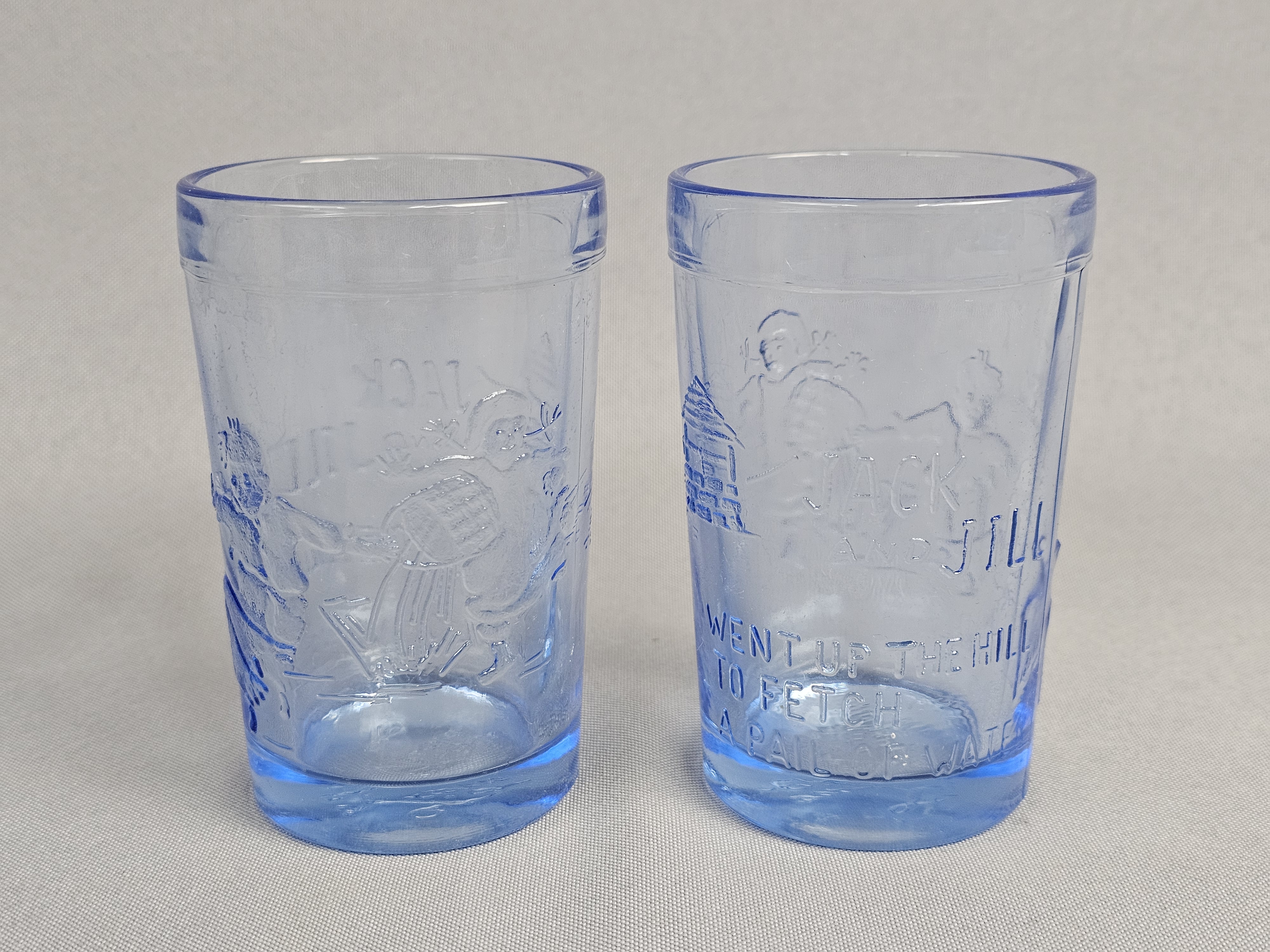 Tiara Exclusives Blue Pressed Glass Nursery Rhyme Child's Tableware Pieces