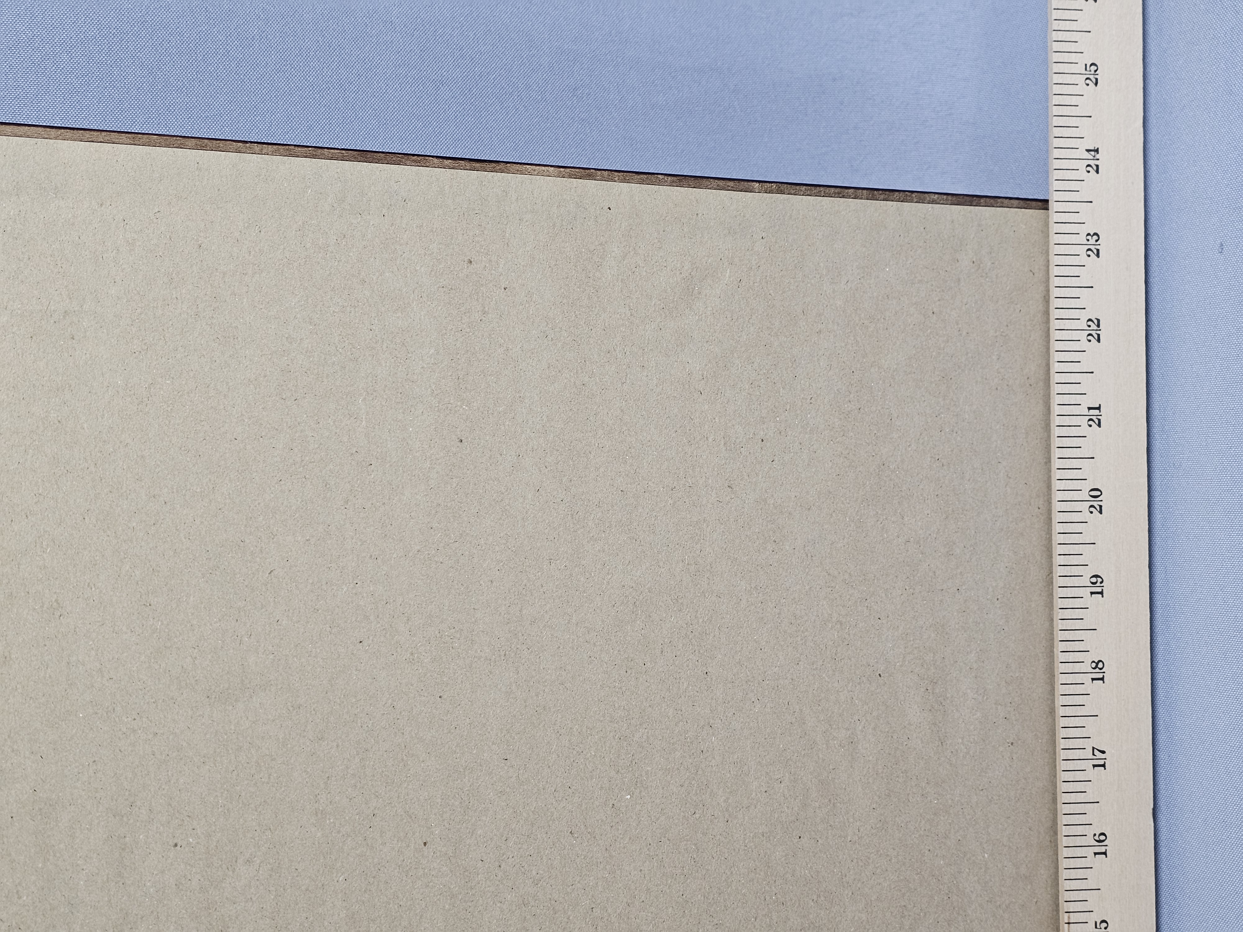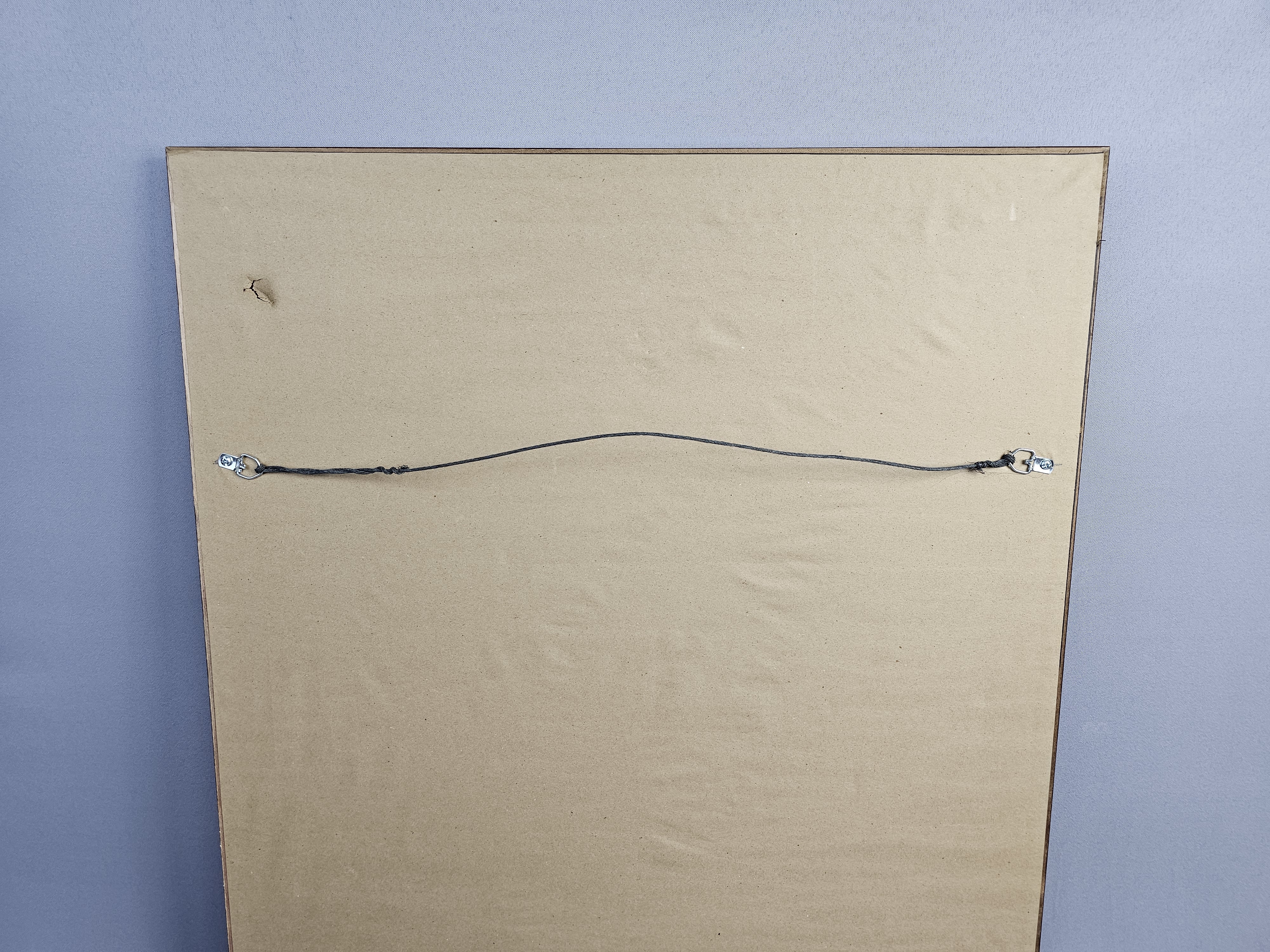 The frame shows minor surface wear and scuffs, particularly along the right side and bottom edges. A small puncture is present in the brown paper dust cover on the reverse. The photograph and matting appear to be in good condition.