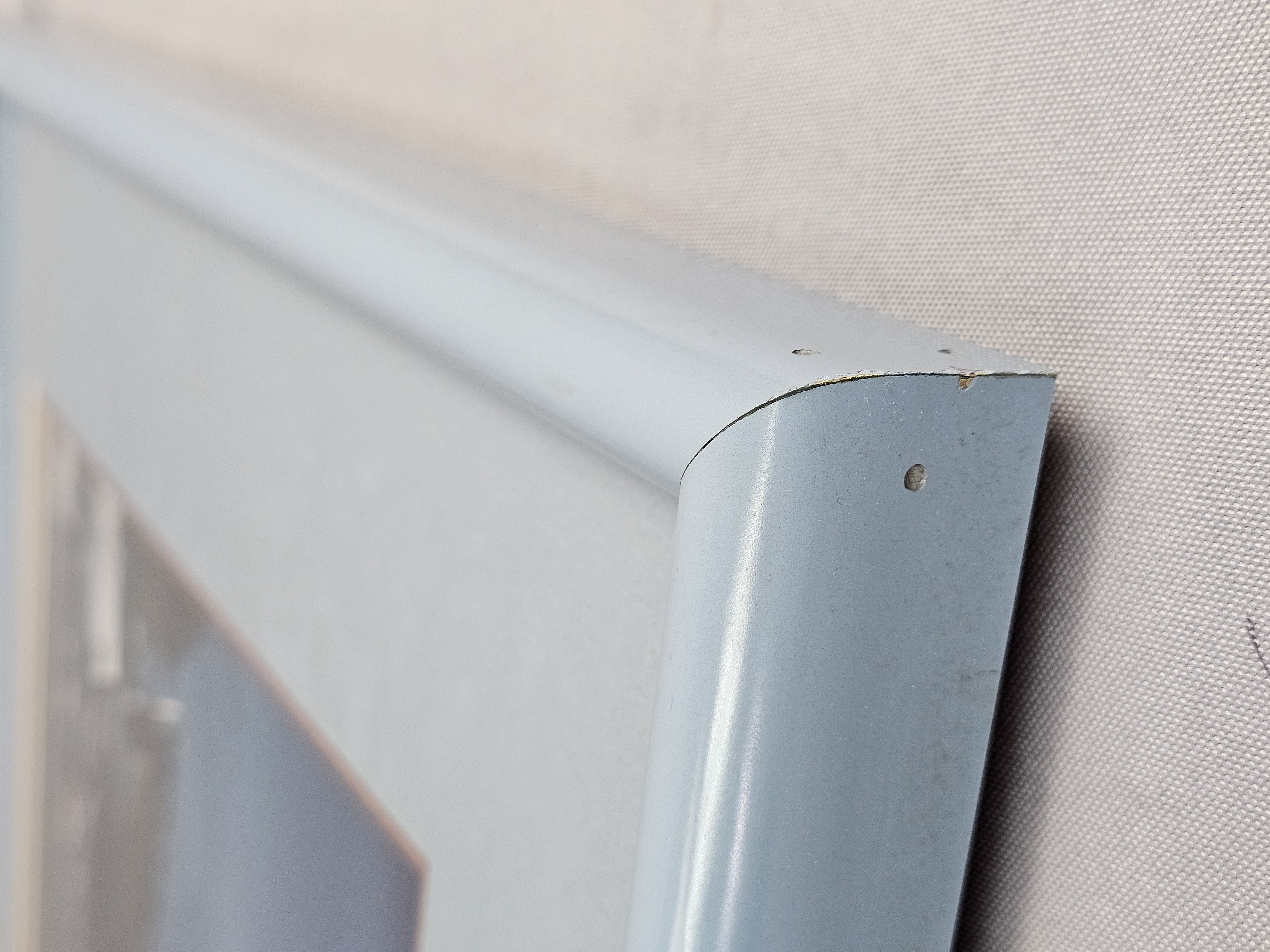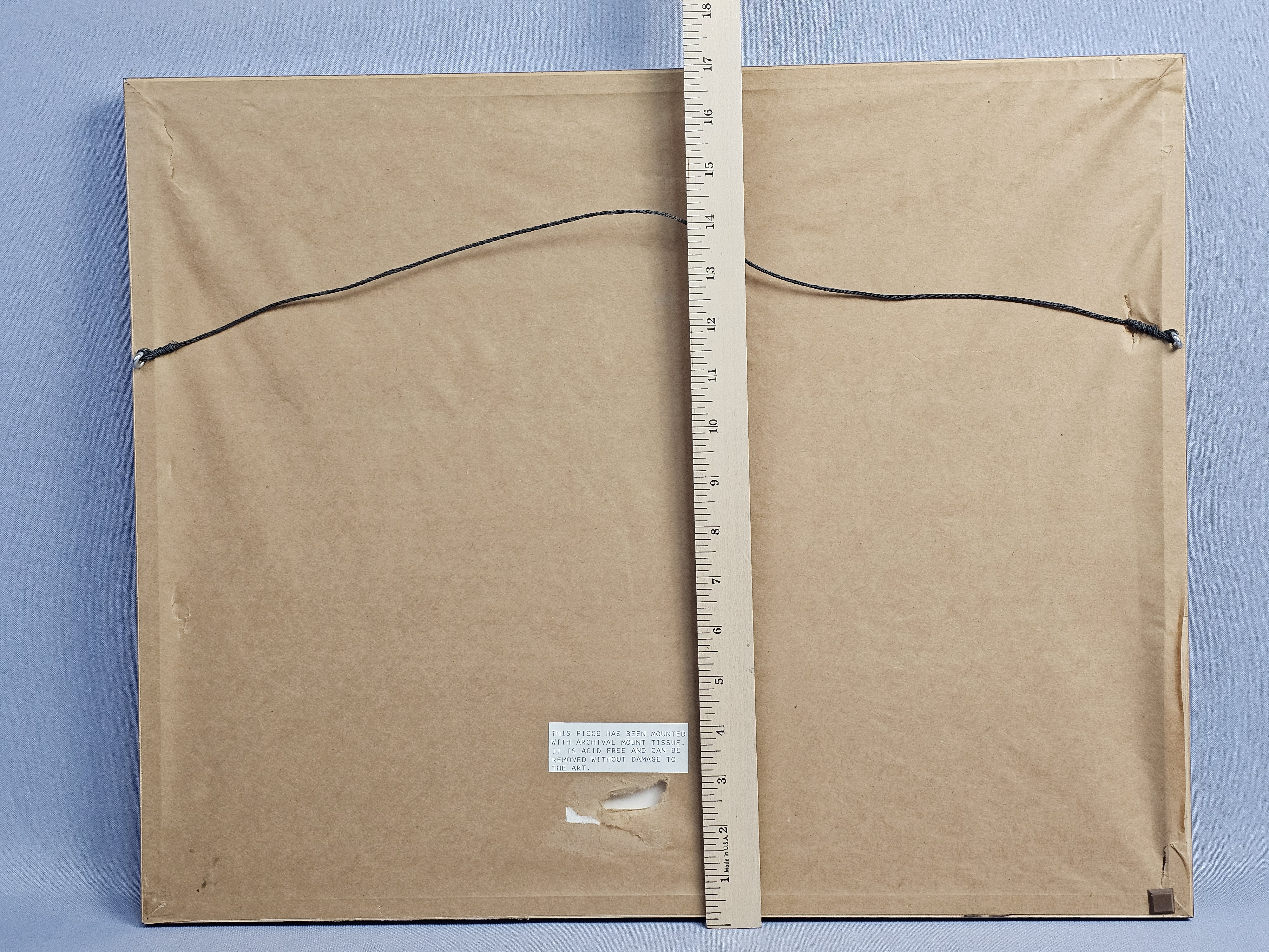 The photograph appears to be in good condition with no apparent fading, foxing, or surface damage. The frame exhibits minor signs of age and wear, including small nicks and paint loss at the corners. There is a puncture in the brown paper backing.