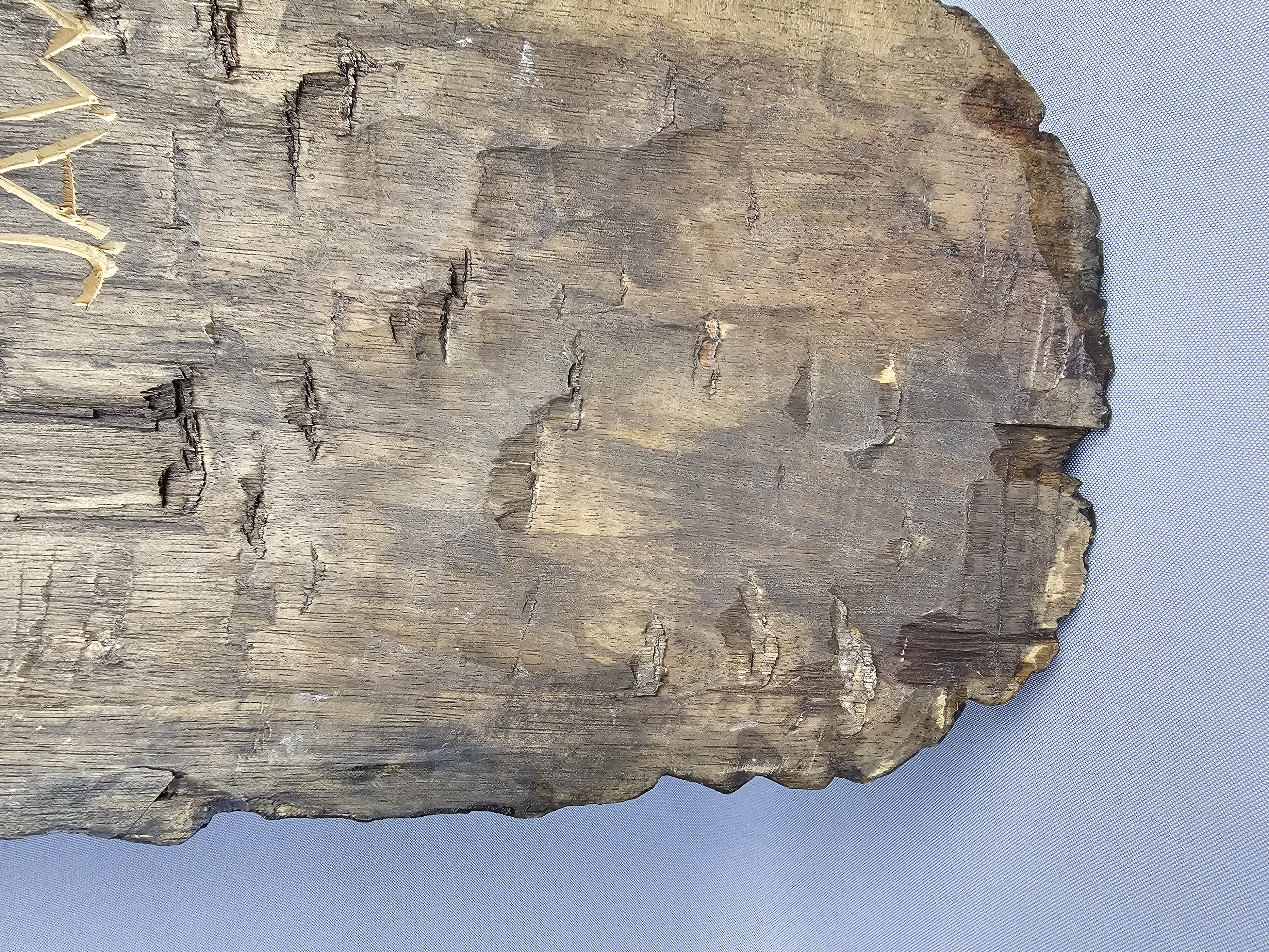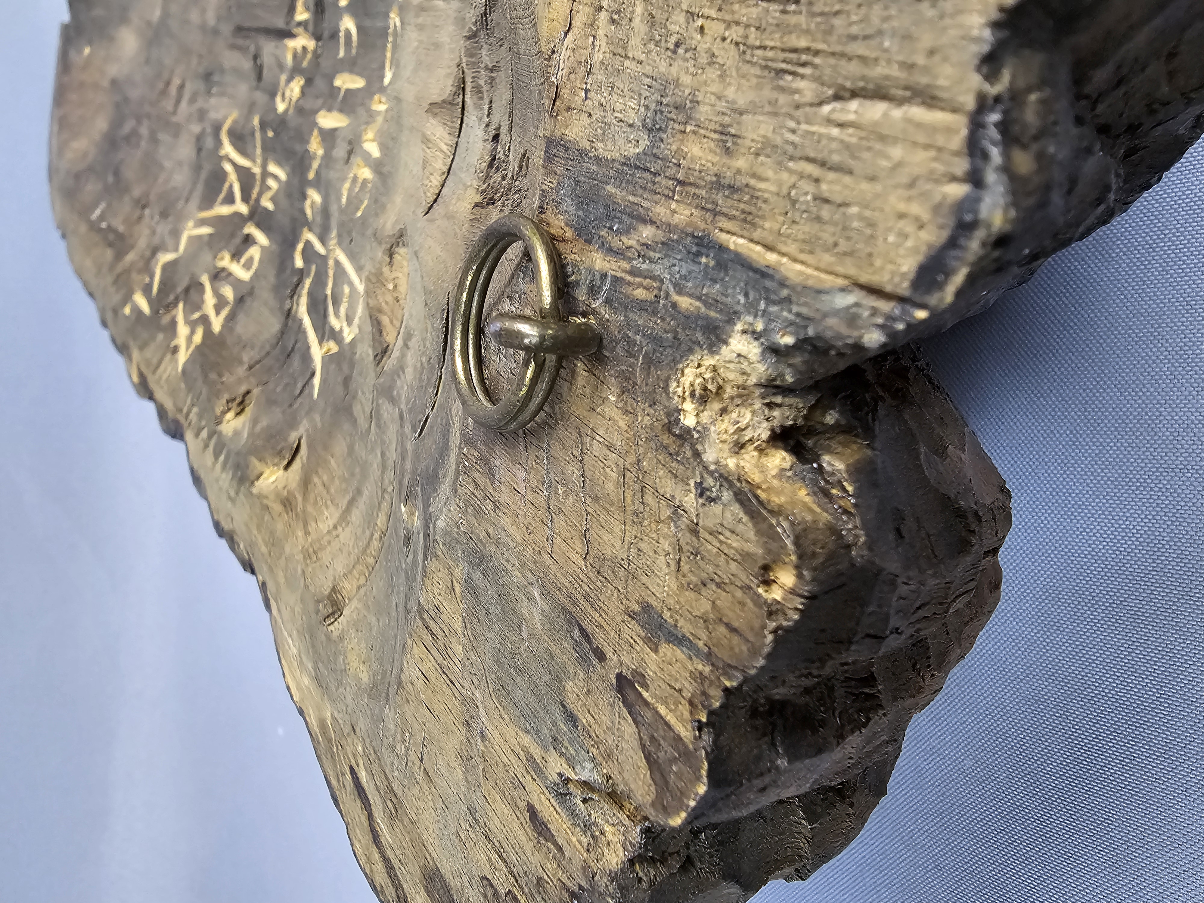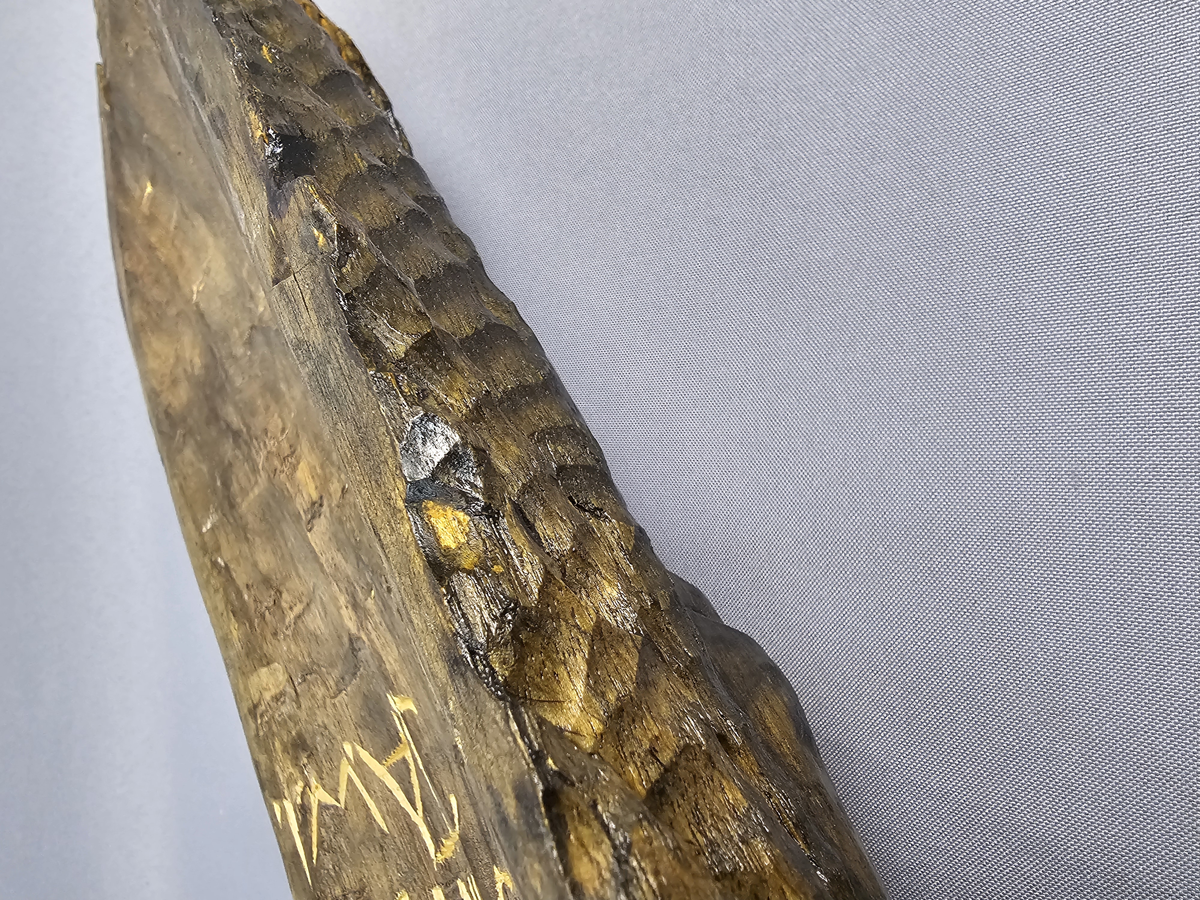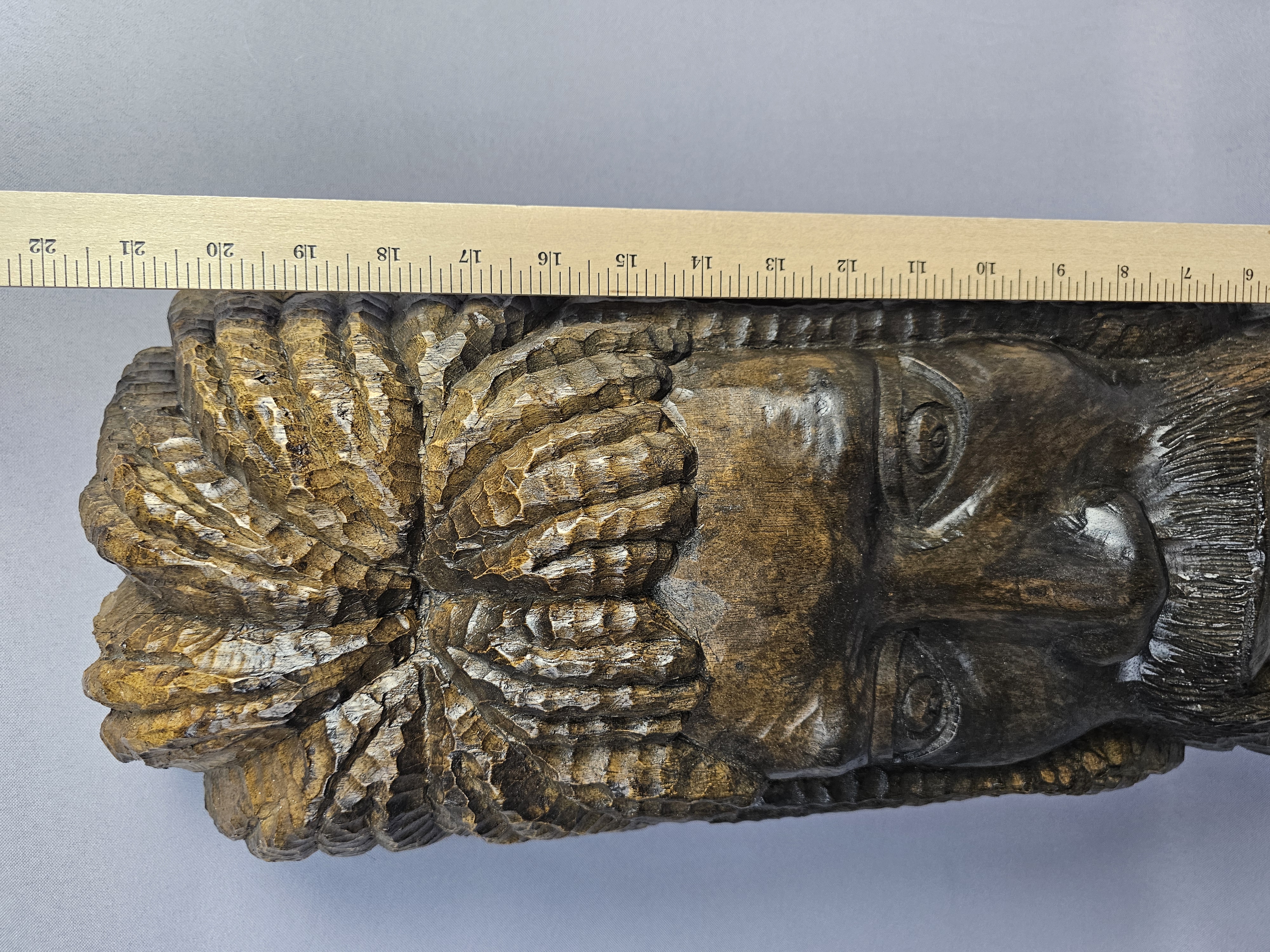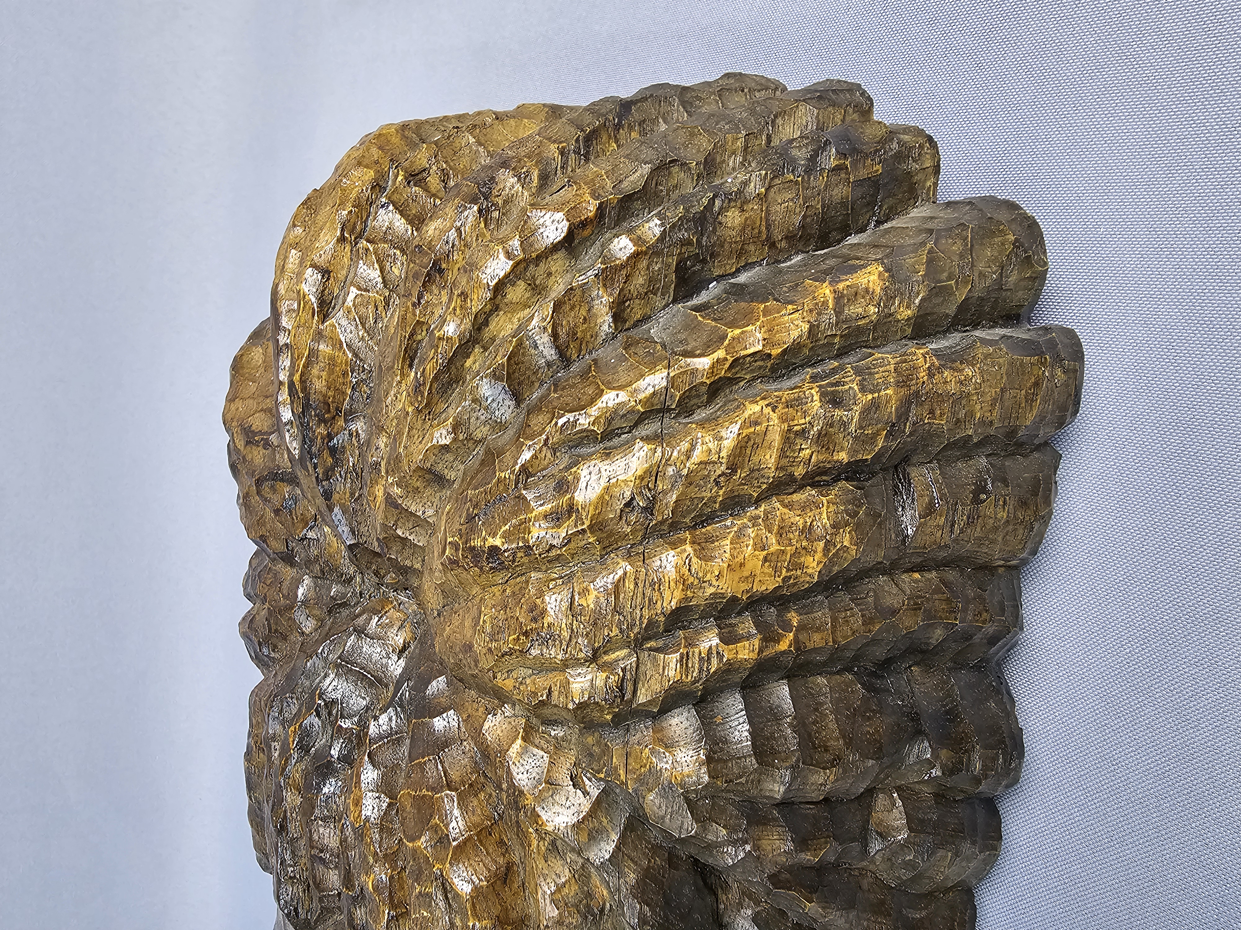 The sculpture is in good overall condition. There is minor surface wear and small abrasions consistent with age and material.