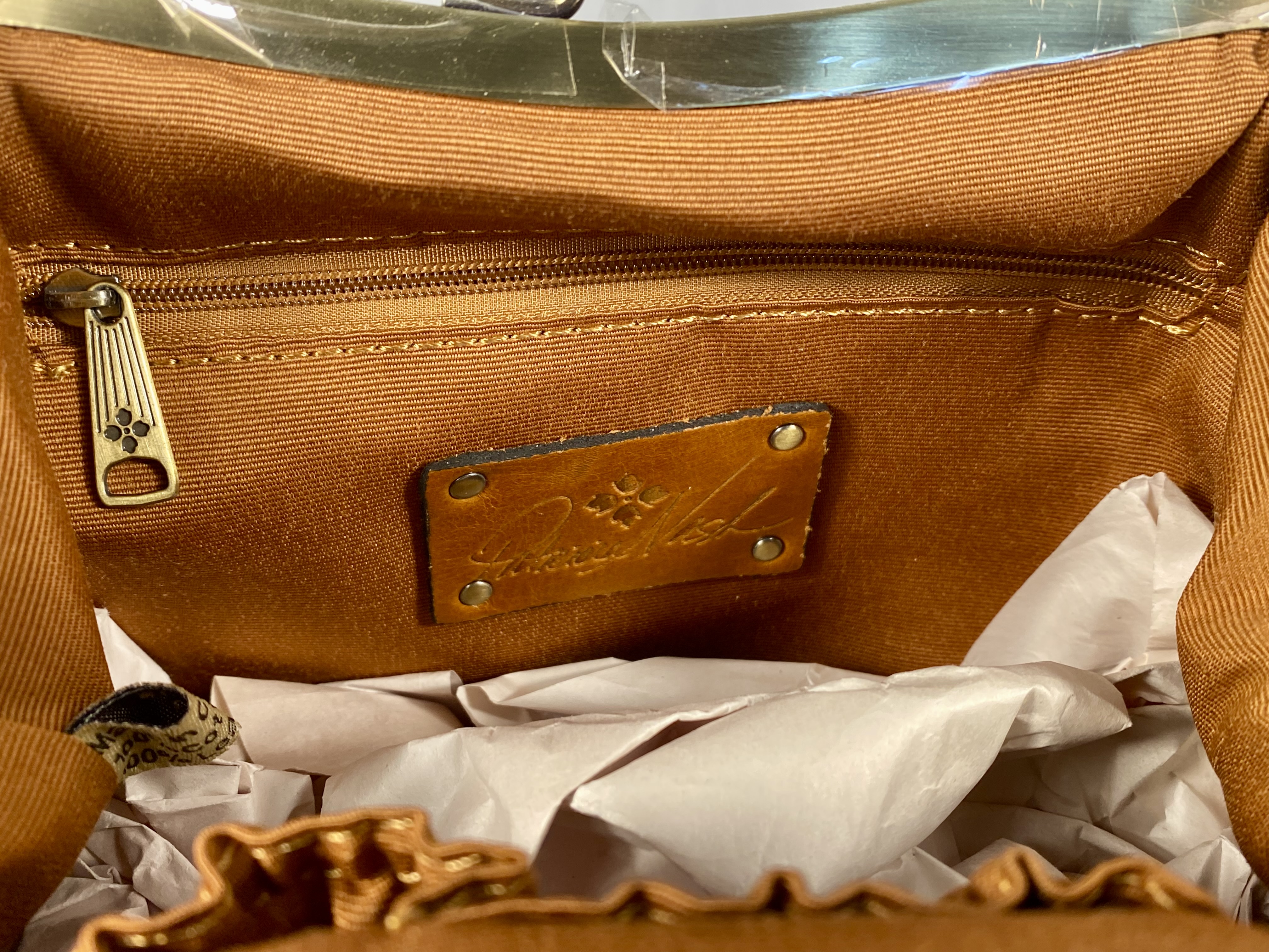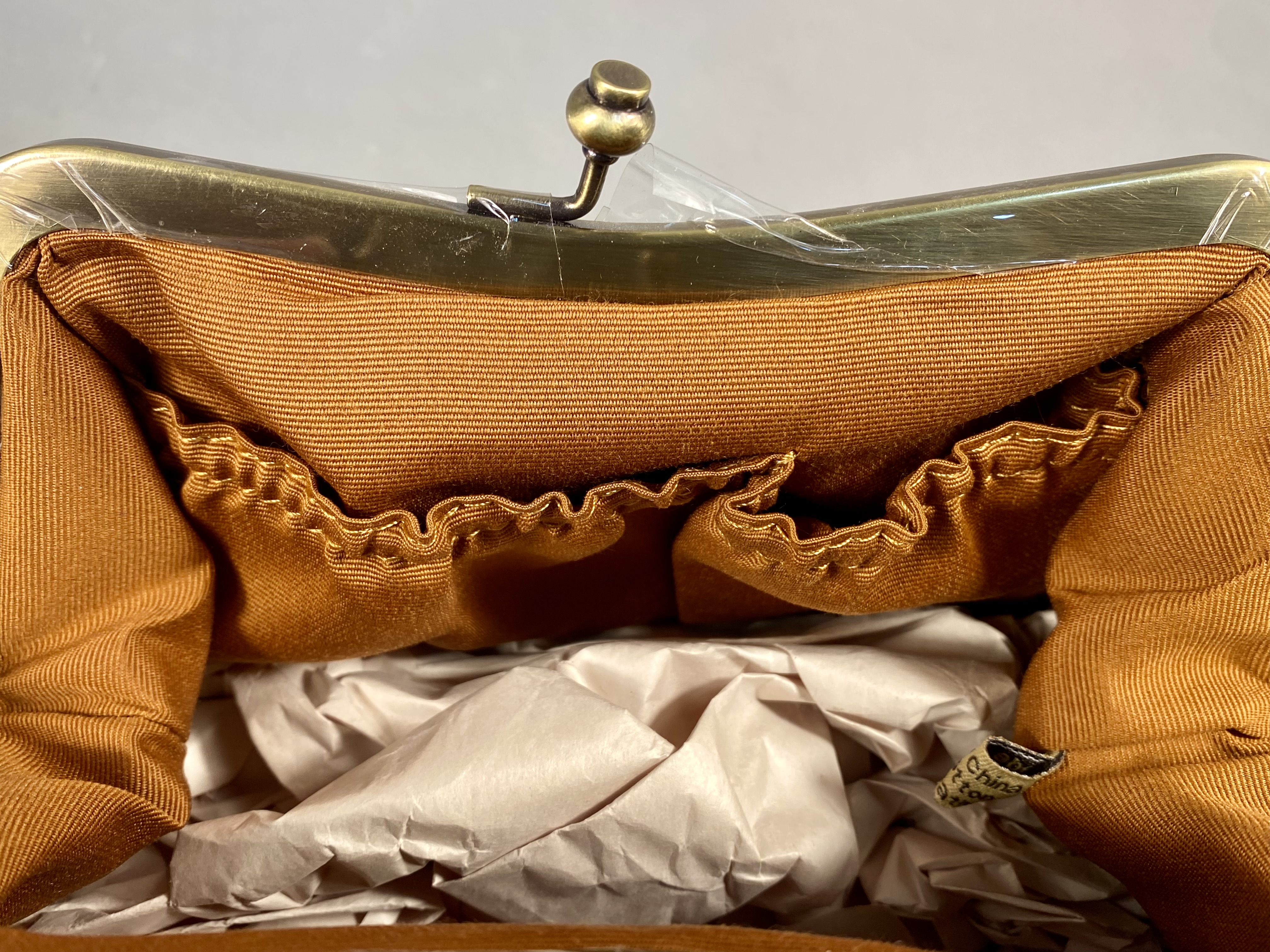 Excellent condition. The item appears unused with original retail hangtags attached. Protective plastic film remains on portions of the metal frame.
