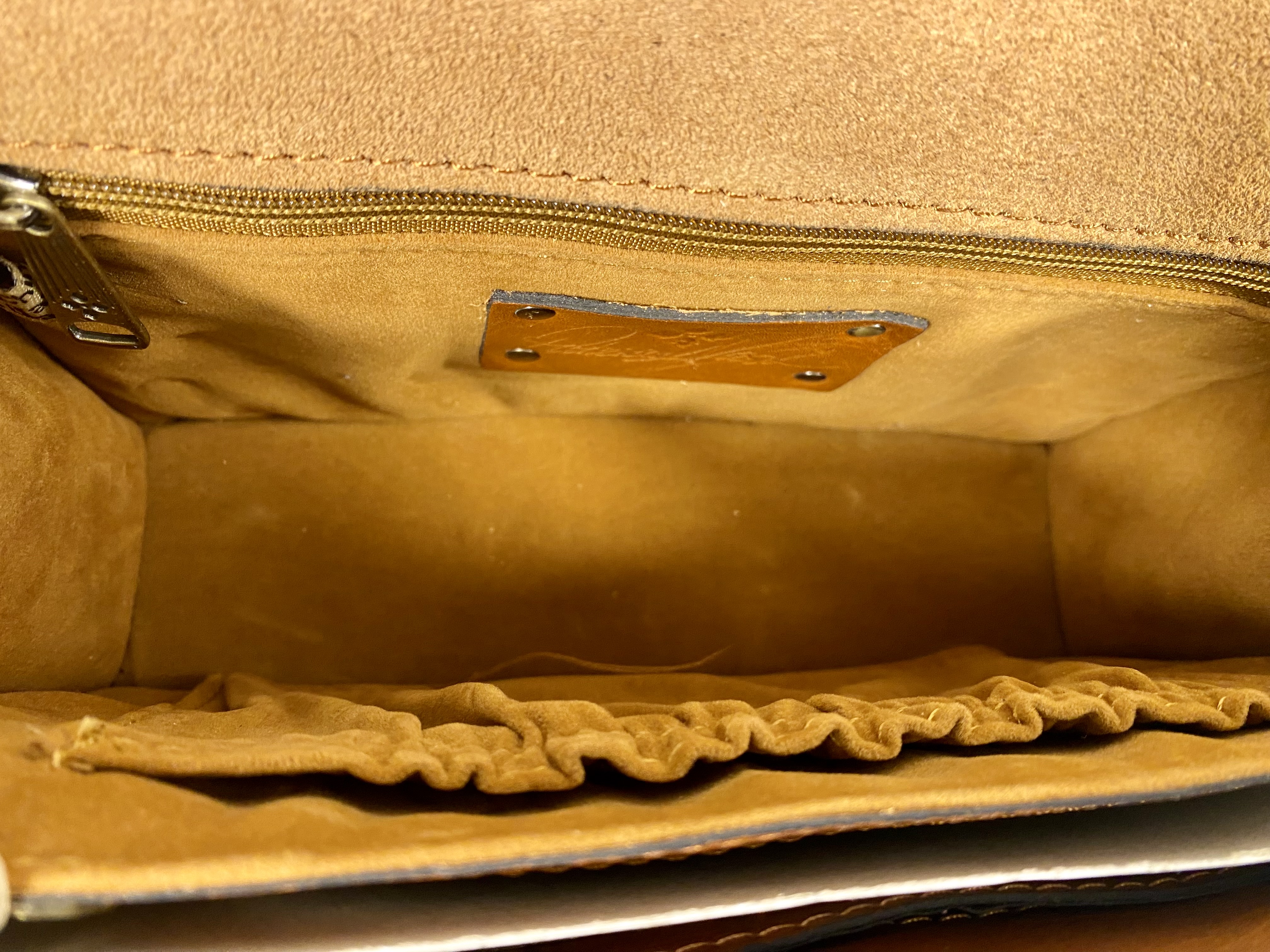 The item is in excellent, like-new condition with the original retail hangtag still attached. The leather and woven straw show no visible signs of wear, scuffing, or fading. The interior is clean and appears unused. The antique brass-tone hardware is functional and free of significant oxidation. Accompanied by the original non-woven dust bag.